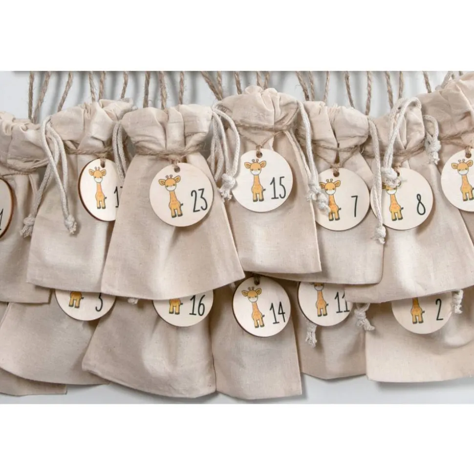 Unsere runden Adventskalender-Zahlen aus Holz kombinieren die Ziffern 1–24 miteiner kleinen, farbig gedruckten Giraffe. So entsteht ein kinderfreundlicher,moderner Look, der zu skandinavischer, natürlicher und auch zu klassischerWeihnachtsdeko passt. Die leichten Anhänger lassen sich schnell befestigen,sind robust und können Jahr für Jahr wieder verwendet werden.