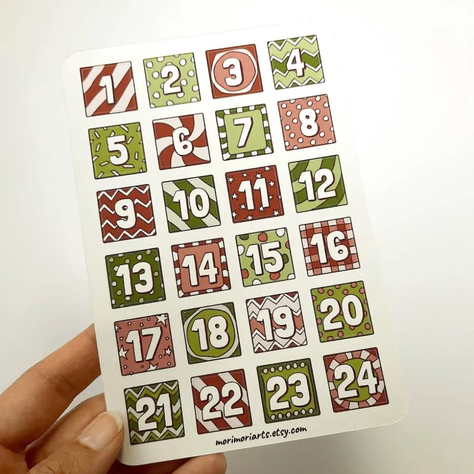 Stickerbogen für Adventskalender – mit Zahlen von 1 bis 24. Perfekt zum Verzieren deines DIY Adventskalenders!