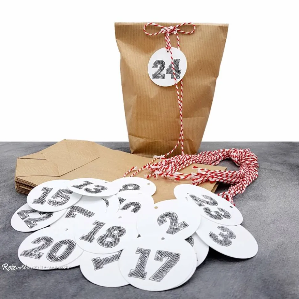 Du fügst nur noch 24 Kleinigkeiten hinzu und kannst direkt mit dem Packen starten. Die Beutel bieten ausreichend Platz für Süßigkeiten, kleine Geschenke oder persönliche Botschaften. Die Kombination aus Kraftpapier, modernen Zahlenanhängern und klassischen Kordeln sorgt für einen reizvollen, handgemachten Look.