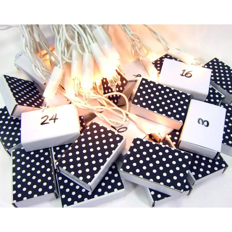 Auf einer Seite WEISSE Pünktchen auf dunkelgrau, auf der anderen Seite farblich passende Zahlen mit tollem Schwung von 1- 24.