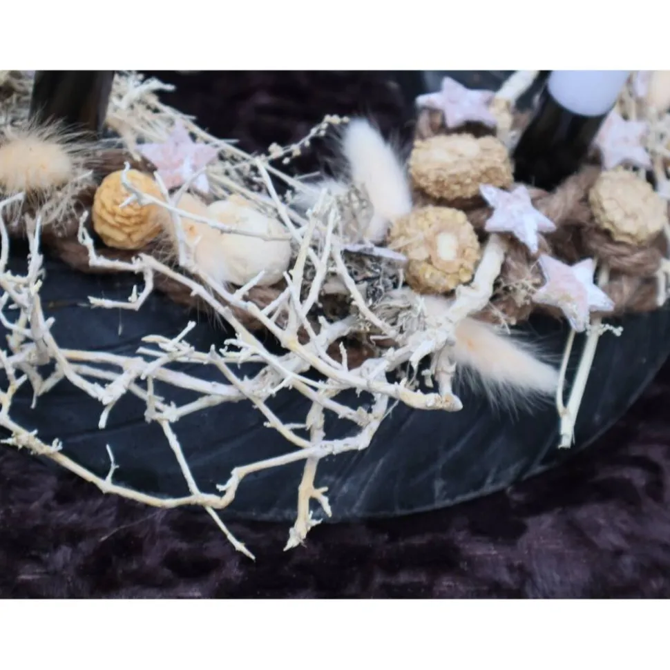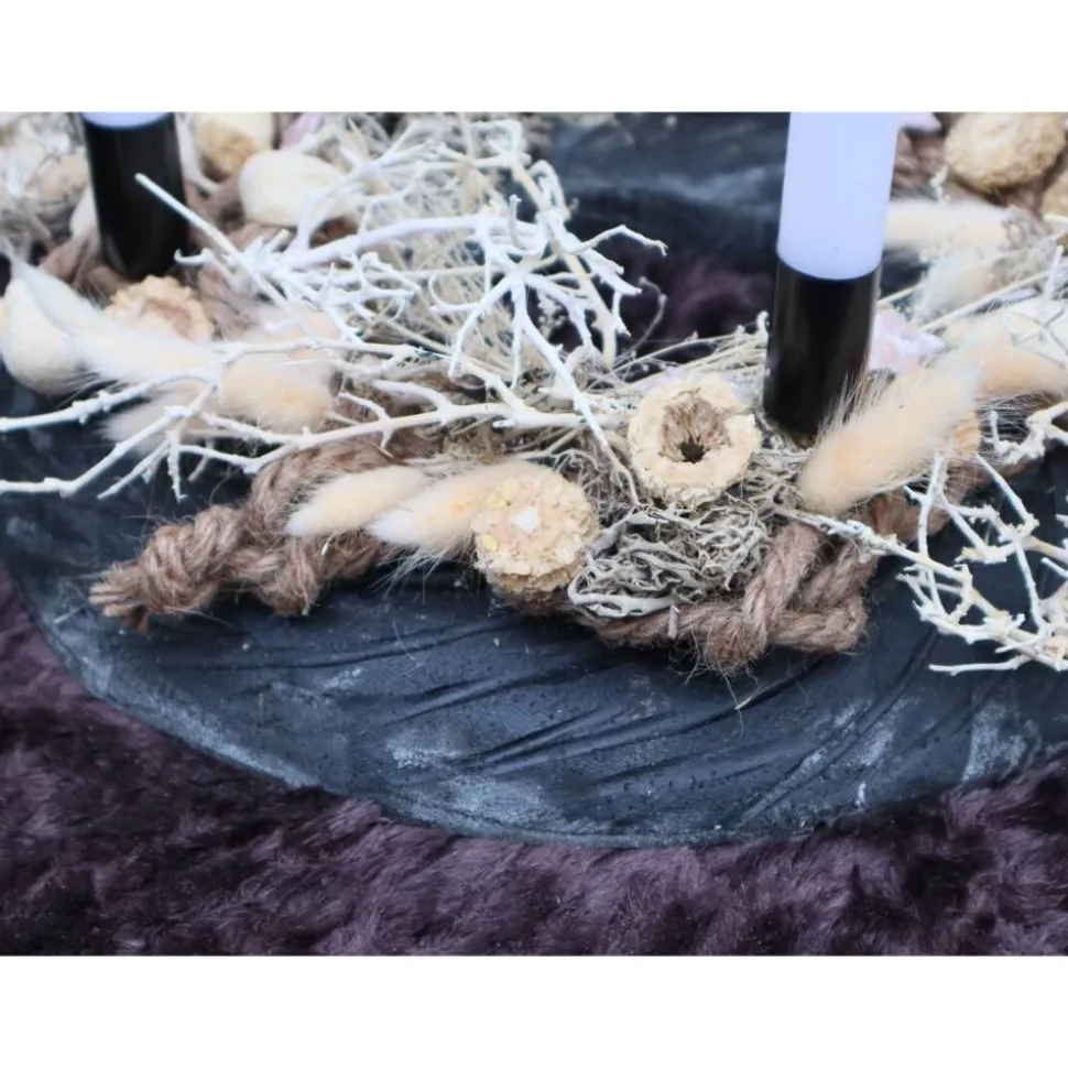 Material: Holz, Metall, Trockenblumen, Kerzen
