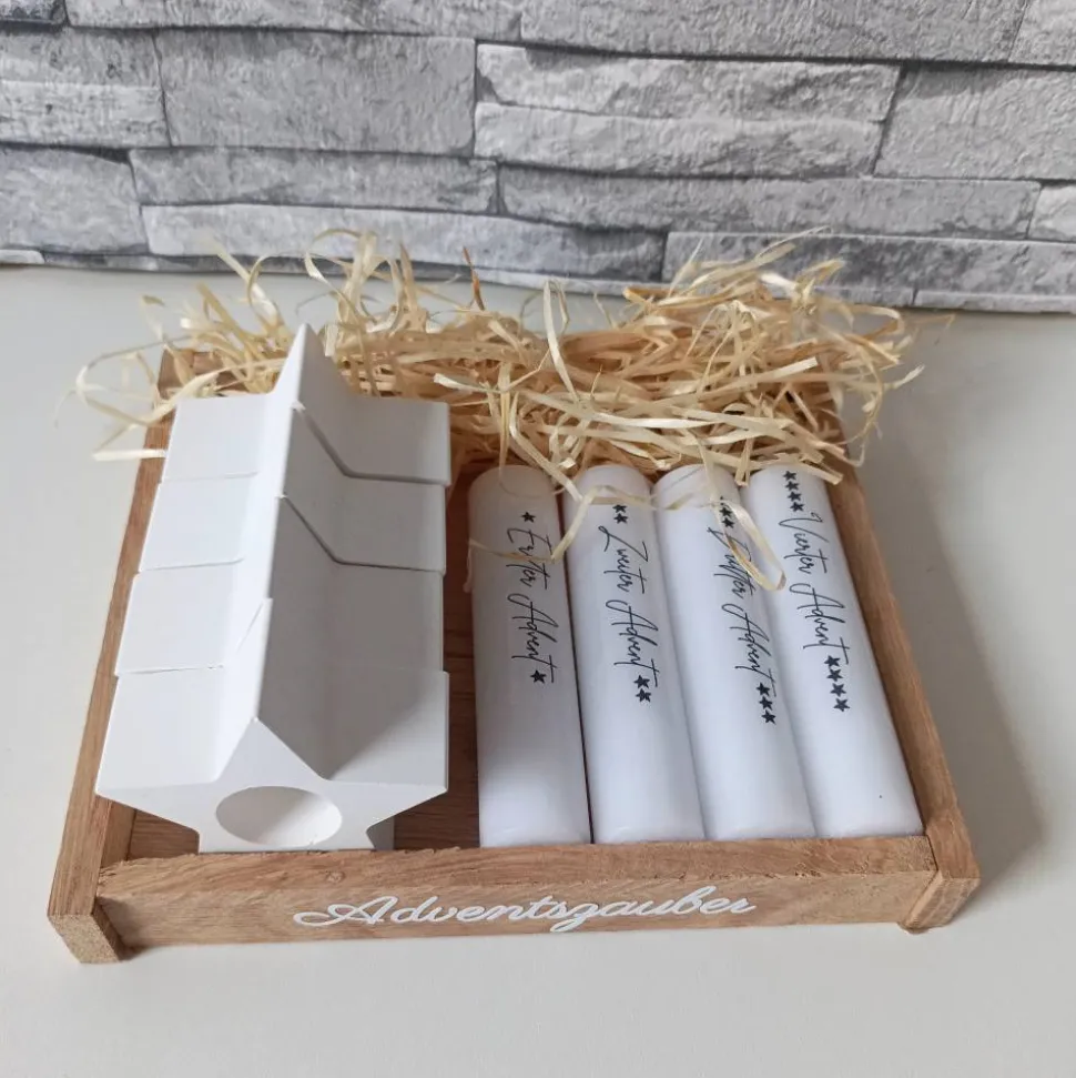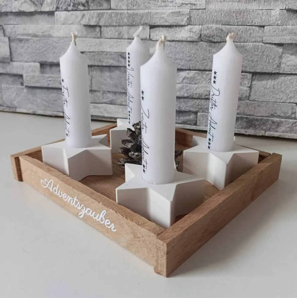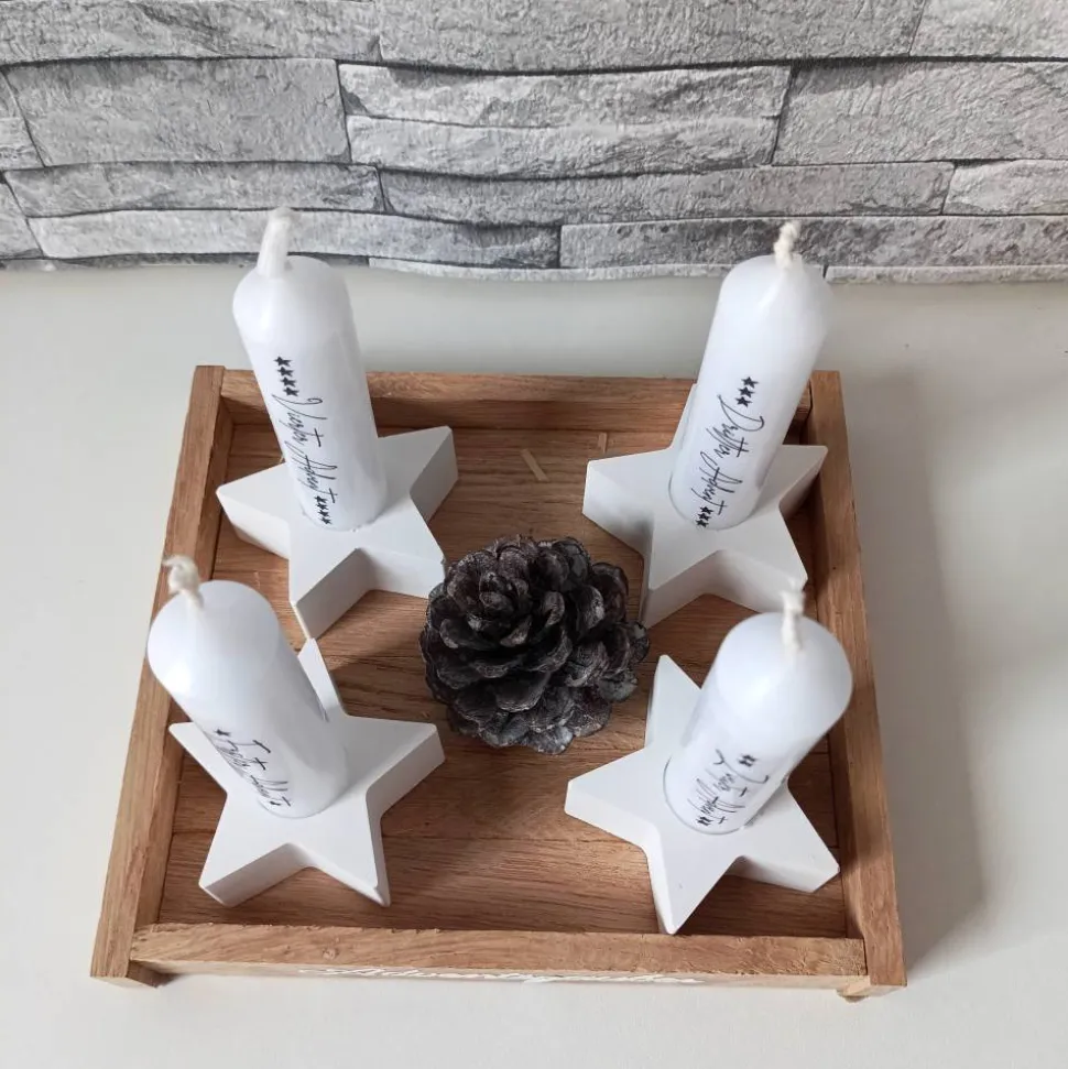 5. Variante: 4er-Set Kerzen Advent, 4 Kerzenhalter Sterne, Tablett Klötzchen