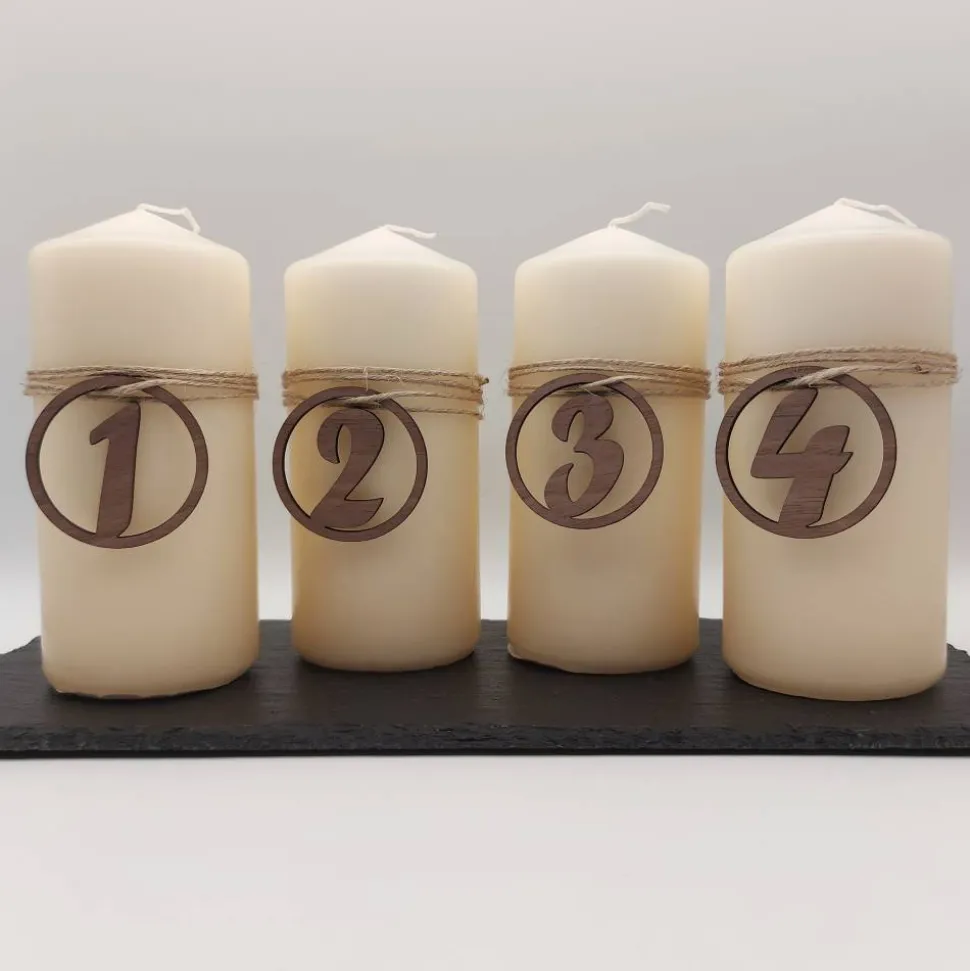 Du kannst die Adventszahlen in den Varianten Birke (helles Holz), Walnuss (dunkles Holz) und Schwarz (lackiert) bei mir erhalten. Nutze die Auswahloption, um mir deinen Wunsch mitzuteilen.