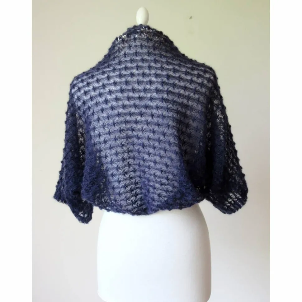 Das feine Jäckchen ist aus weichem italienischen Kid-Mohair Garn .gestrickt Mit einer innovativen Stricktechnik ist das Lace-artige Struktur-Muster gearbeitet – dieses gibt dem Accessoire eine duftige und edle Note.