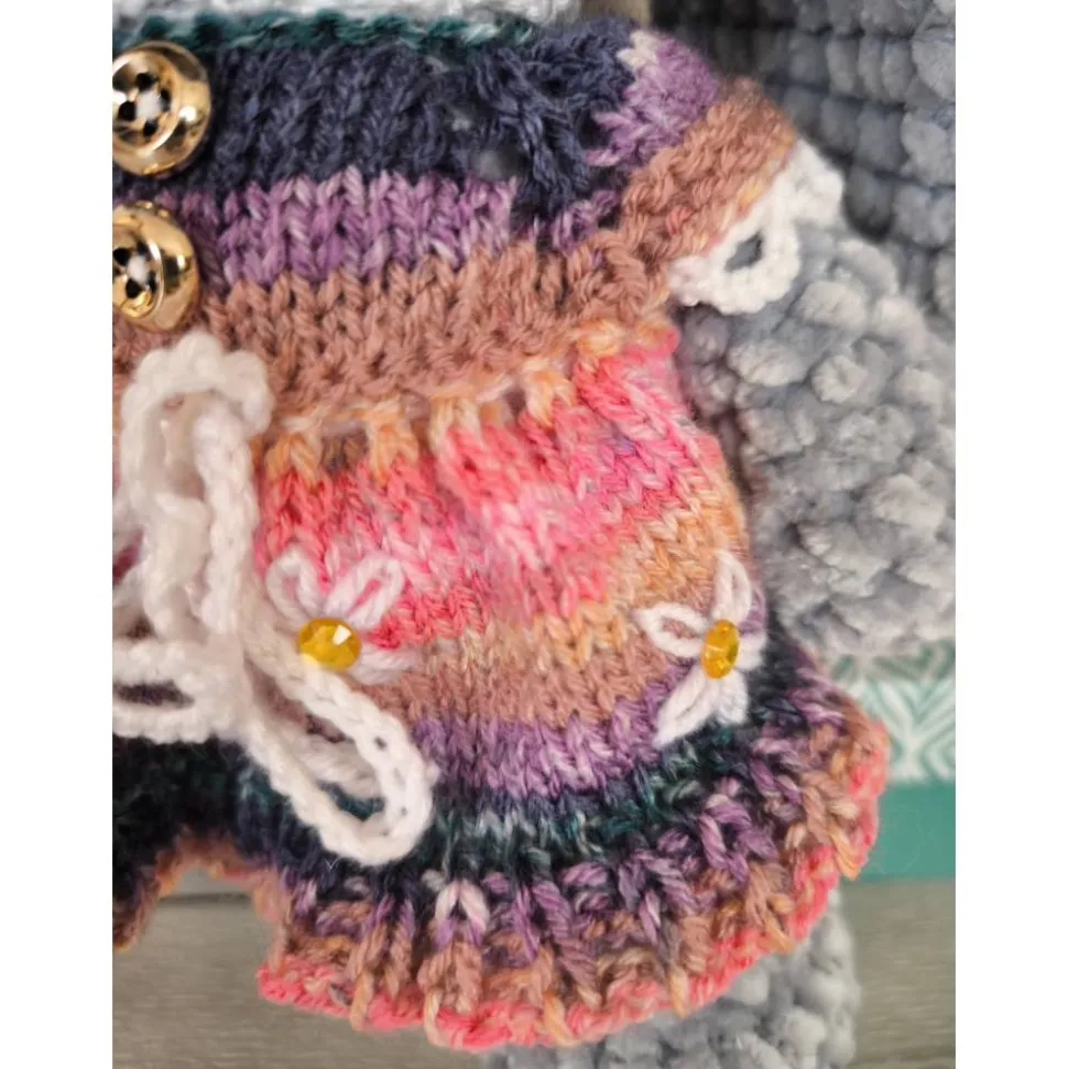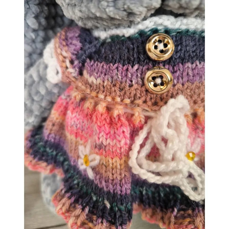 ✔ Farben: Hellgrauer Körper und bunte Kleid mit Gänseblümchenstikerei