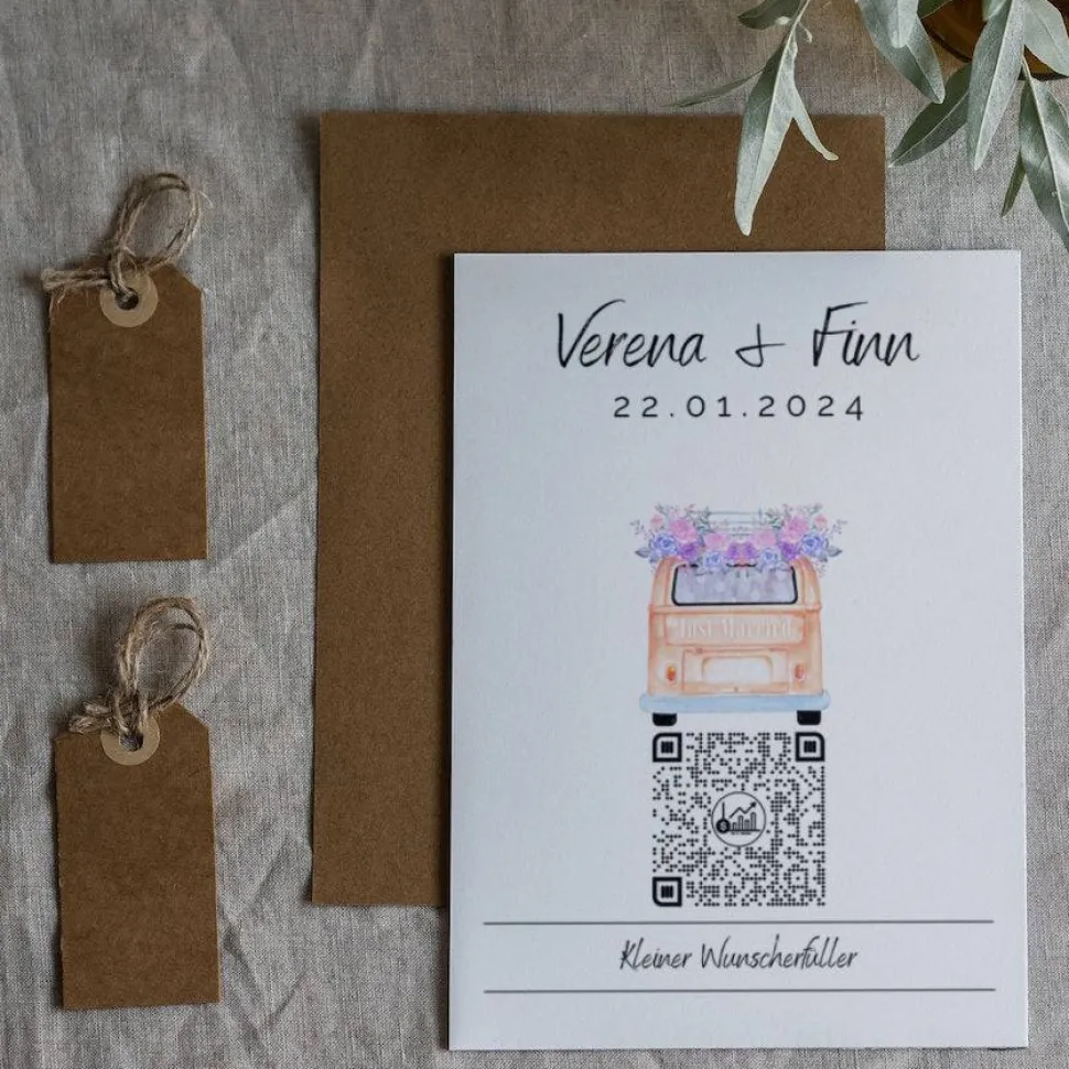 Aktien Etf Geldgeschenk | Personalisiertes Hochzeitsgeschenk | QrCode Geschenkkarte | Bulli