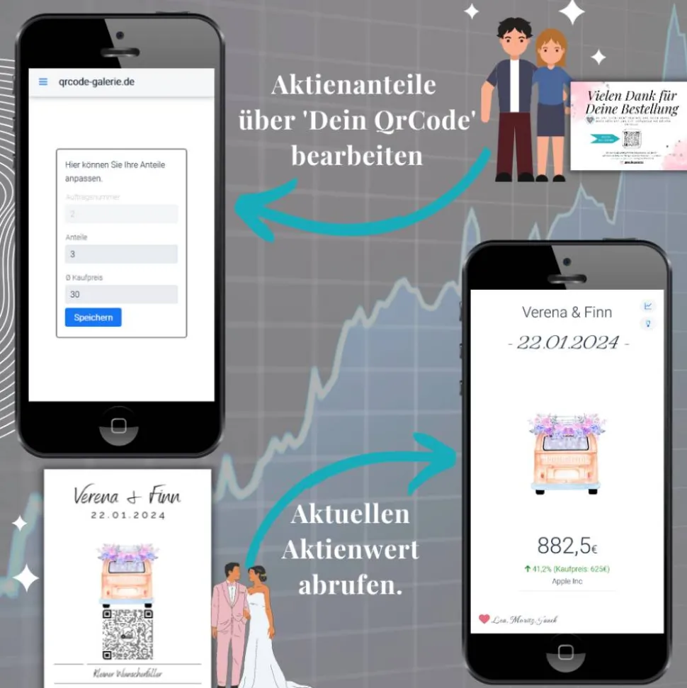 ❤️️ Du möchtest zur Hochzeit kein Bargeld verschenken, sondern lieber eine Aktie? Und bist noch auf der Suche nach einer schönen Verpackung? Dann ist diese QrCode Geschenkkarte perfekt.