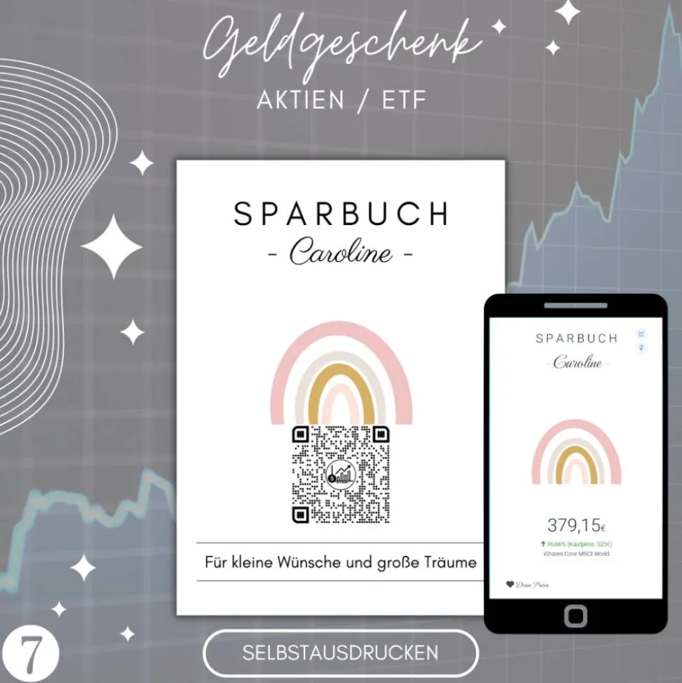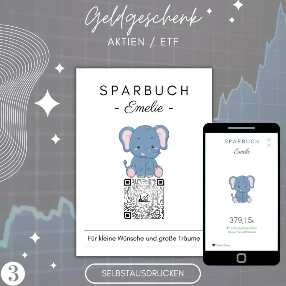 2) Du erhälst von uns „Deinen QrCode“ auf einem seperaten Bild. Über diesen QrCode kannst du die Aktienanteile hinterlegen die du bereits gekauft hast. Die Anzahl lässt sich jederzeit ändern. Dadurch kannst du bei deiner Bank/Broker einen Sparplan anlegen und/oder die Aktienanteile zum Geburtstag, Weihnachten etc. über die Jahre aufstocken.
