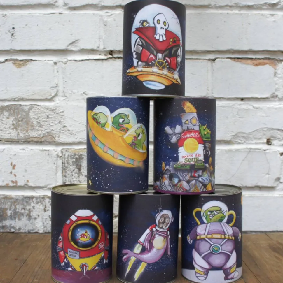 In Set “ Mission VI Achtung Außerirdische“ sind 3 DIN A4 Motivbögen mit 6 verschiedene Außerirdischen enthalten. Jedes Motiv ist 10 cm hoch und 29 cm lang und passt perfekt um eine 400ml Dose.