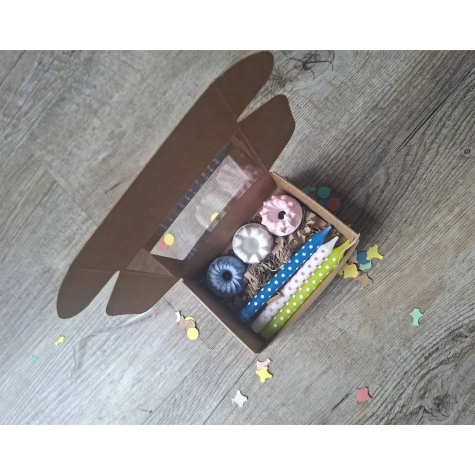 Dieser kleine Karton mit drei Mini-Gugelhupf en mit drei Kerzen ist eine individuelle, persönliche und besondere Geschenkidee für jeden Geburtstag.