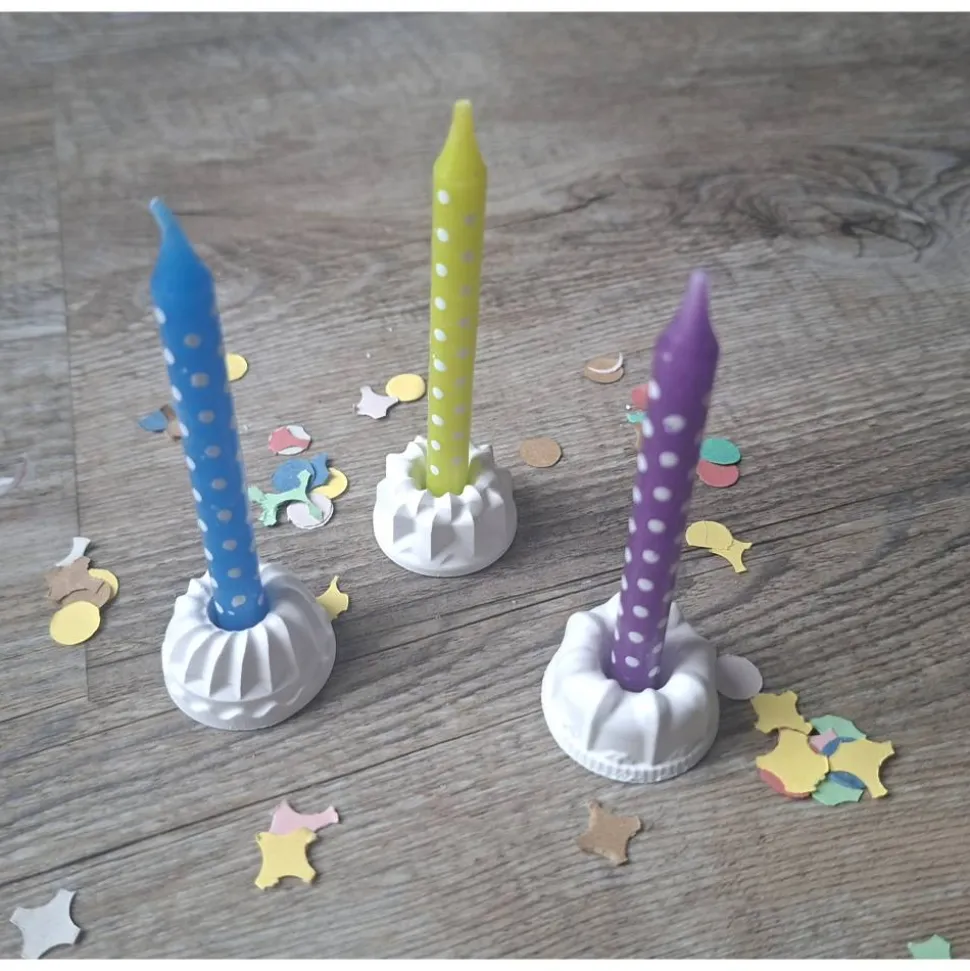 – einer drei Kuchenkerzen(ca. 7,25 cm lang und einem Durchmesser von 0,6 cm )