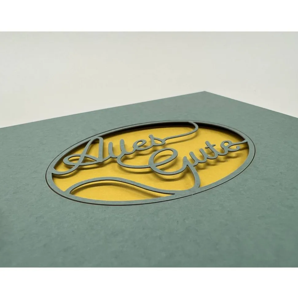 Das lasergeschnittenene Motiv kann nach Verwendung mit einfachen Handgriffen aus der Karte herausgelöst werden. So bleibt eine schöne Erinnerung an einen besonderen Anlass.