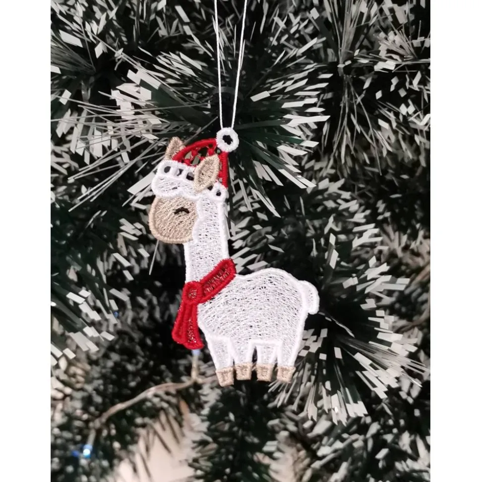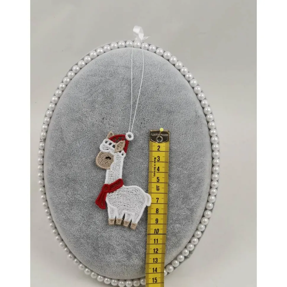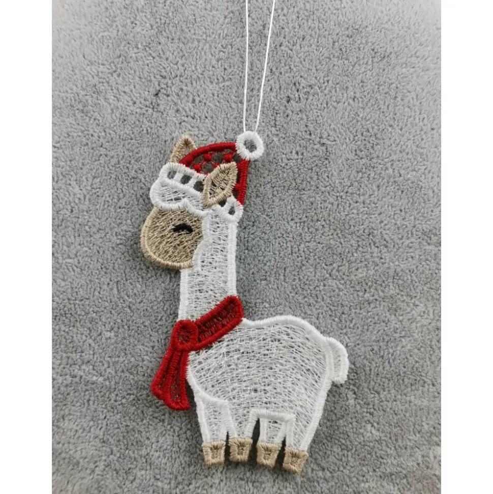 Lace Produkte werden mit einer Stickmaschine und Stickgarn auf wasserlöslichem Vlies gestickt. Nach dem Stickvorgang wird das Vlies ausgewaschen, sodass letztendlich nur die Stickerei übrig bleibt. Nach dem Trocknungsvorgang wird noch das Band zum aufhängen befestigt.