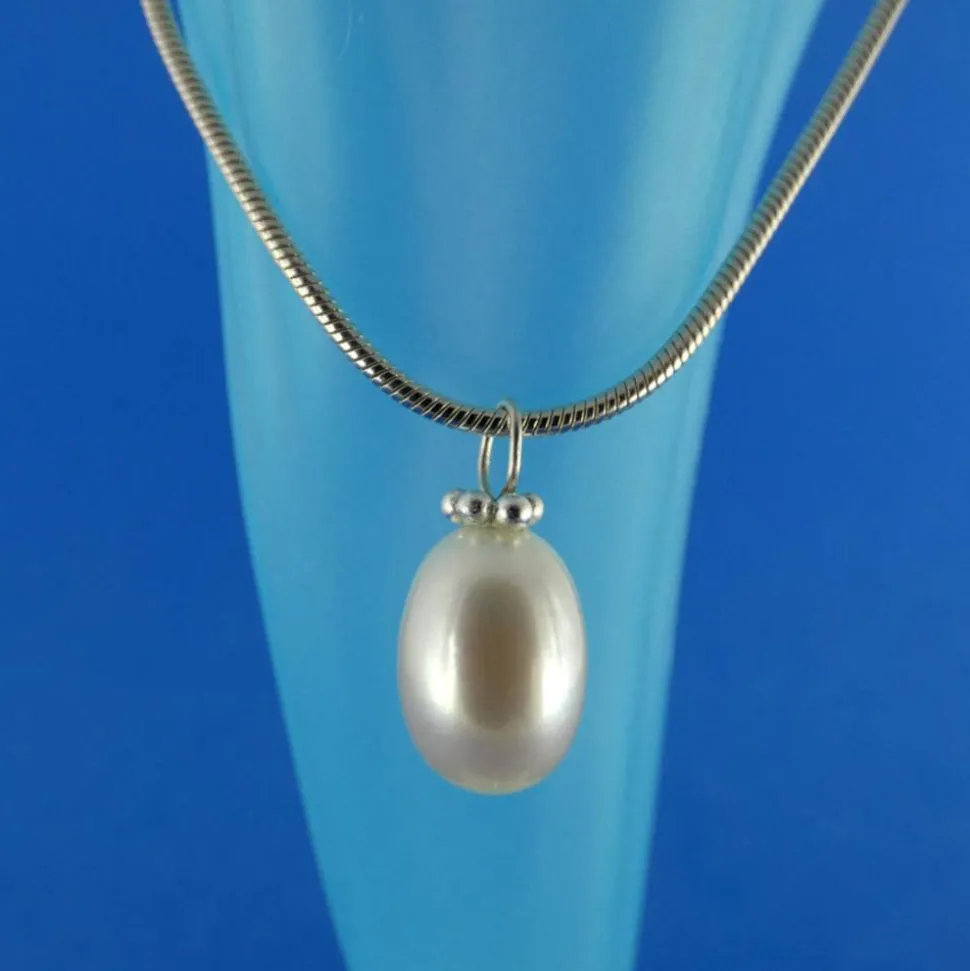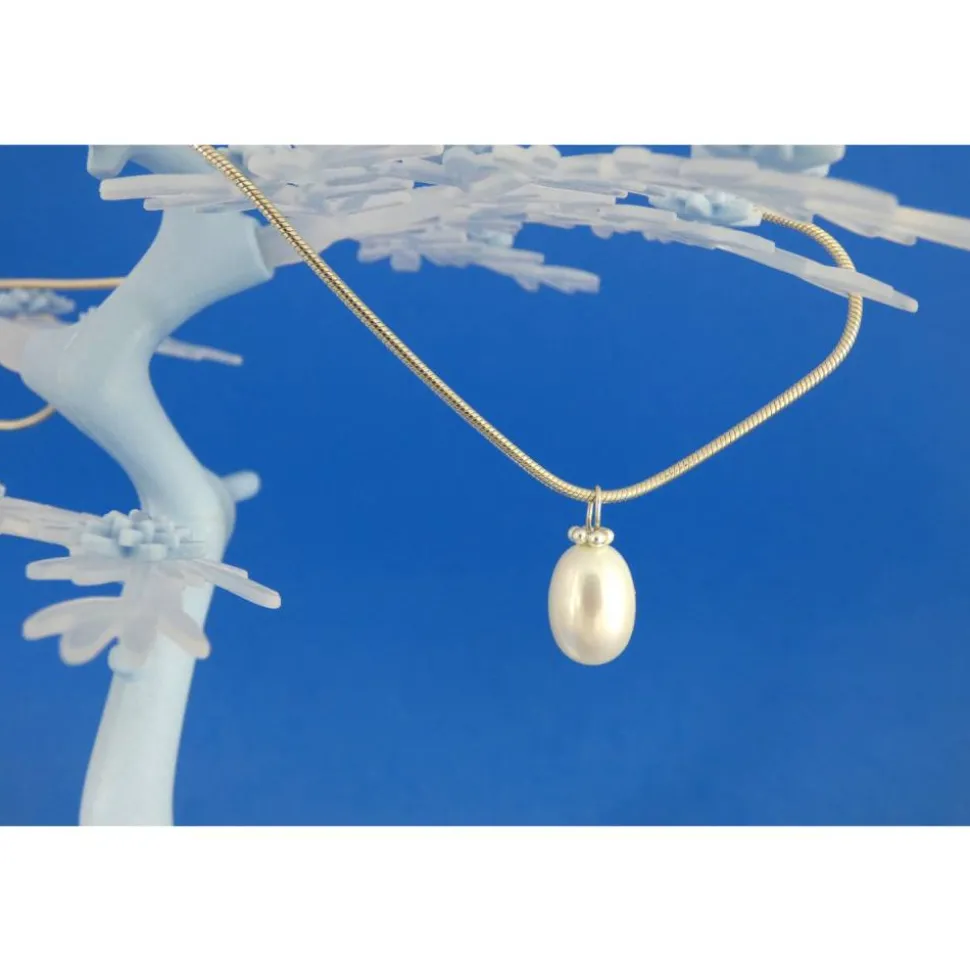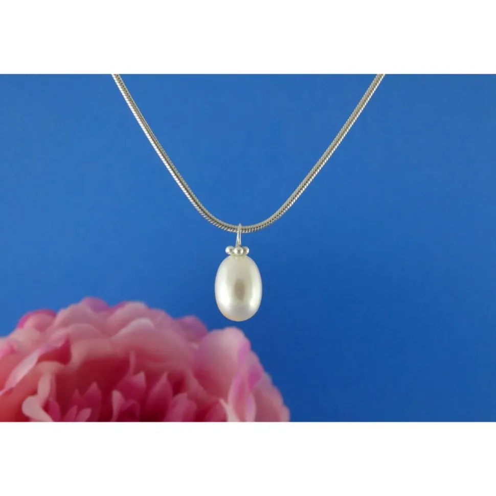 Als Material für die Öse und den Perlenkranz wurde Argentium®-Sterlingsilber (935/000) verwendet. Im Vergleich zu herkömmlichem Sterlingsilber (935/000) enthält Argentium®-Sterlingsilber neben Recyclingsilber und Kupfer zusätzlich einen geringen Anteil des Metalls Germanium. Dadurch hat es einen sehr weißen Silberfarbton, lässt sich umweltschonender verarbeiten und neigt nur sehr wenig zum Anlaufen. Für den Silberanteil wird bei seiner Herstellung ausschließlich Recyclingsilber verwendet. Argentium® ist frei von Nickel und wird daher auch von Allergikern sehr gut vertragen.