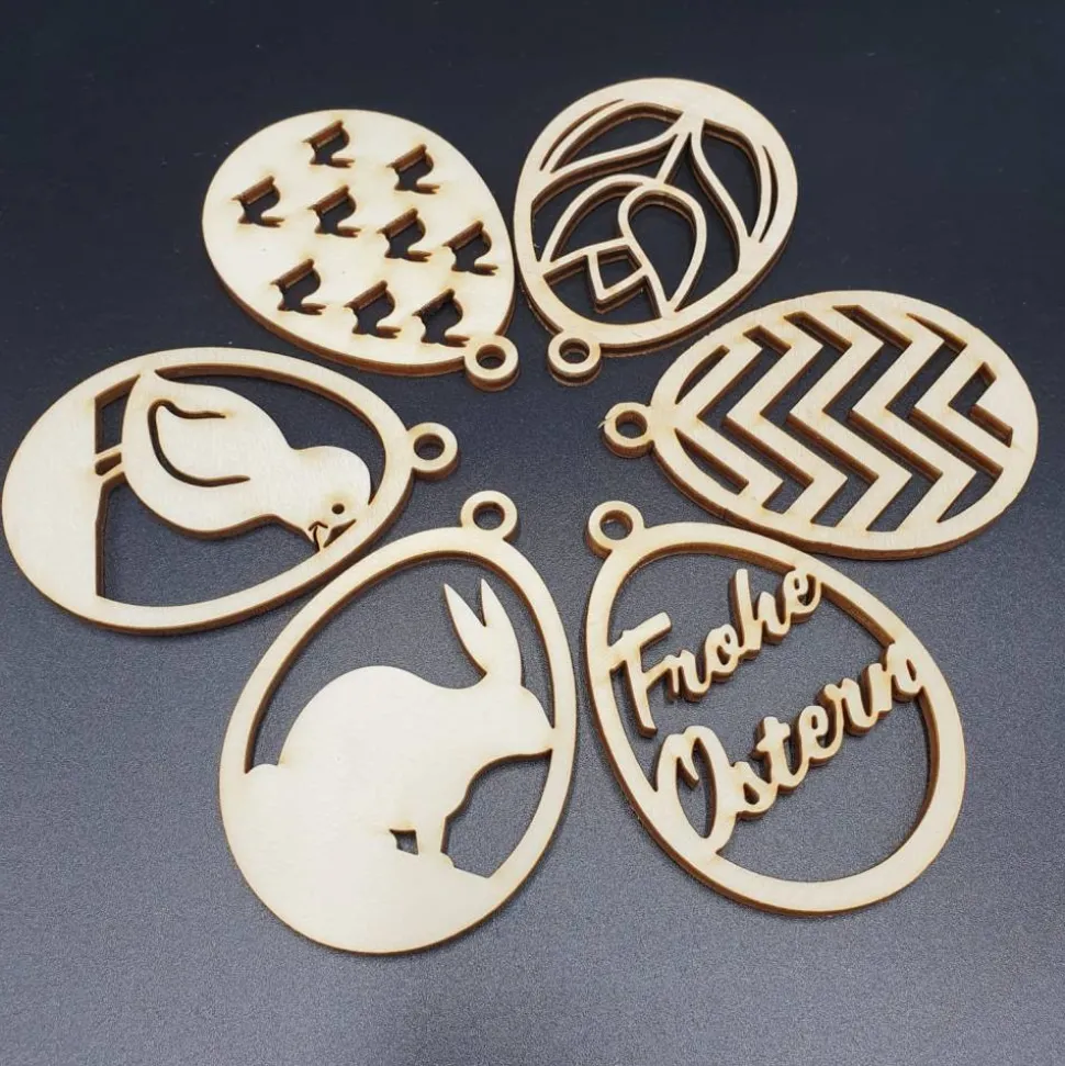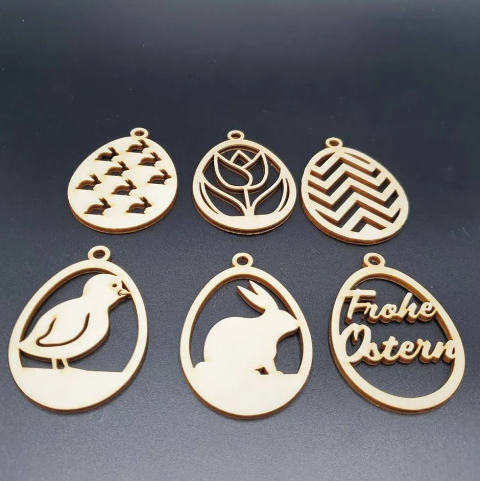 Die Anhänger isnd aus 4mm dickem Pappel-Sperrholz, sie sind jeweils 7,6cm hoch und 5,3cm breit.