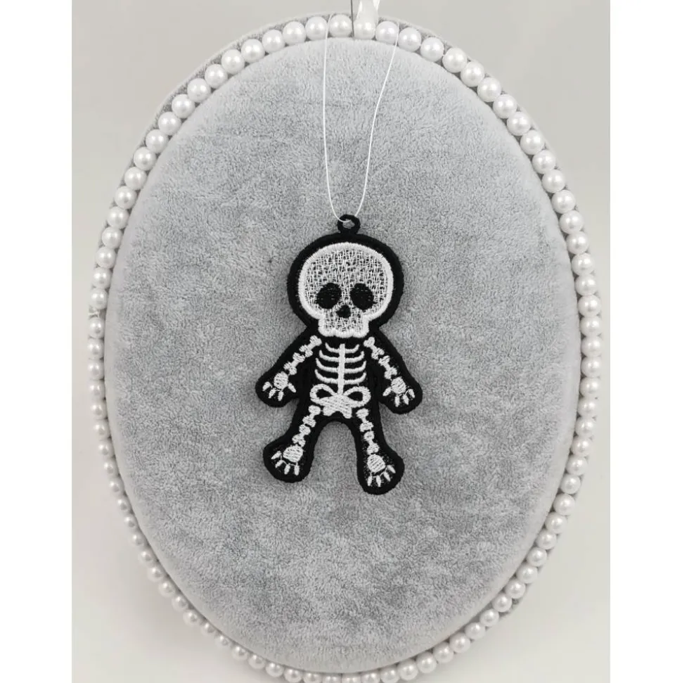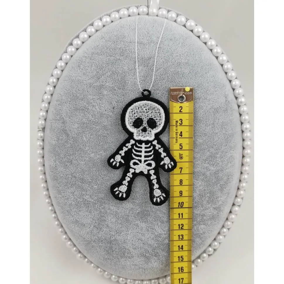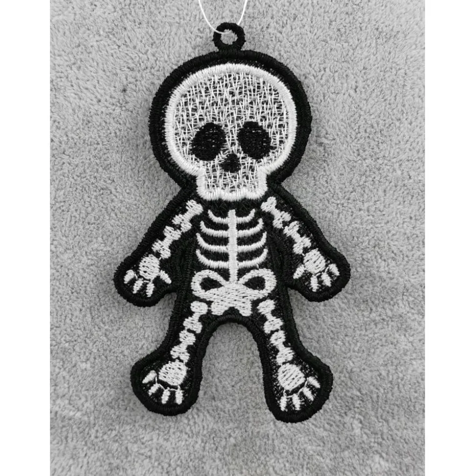 Lace Produkte werden mit einer Stickmaschine und Stickgarn auf wasserlöslichem Vlies gestickt. Nach dem Stickvorgang wird das Vlies ausgewaschen, sodass letztendlich nur die Stickerei übrig bleibt.