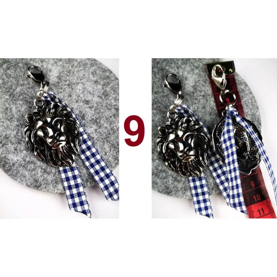 Die Längen der verschiedenen Anhänger sind auf dem Bild (Masband in cm) erkennbar.