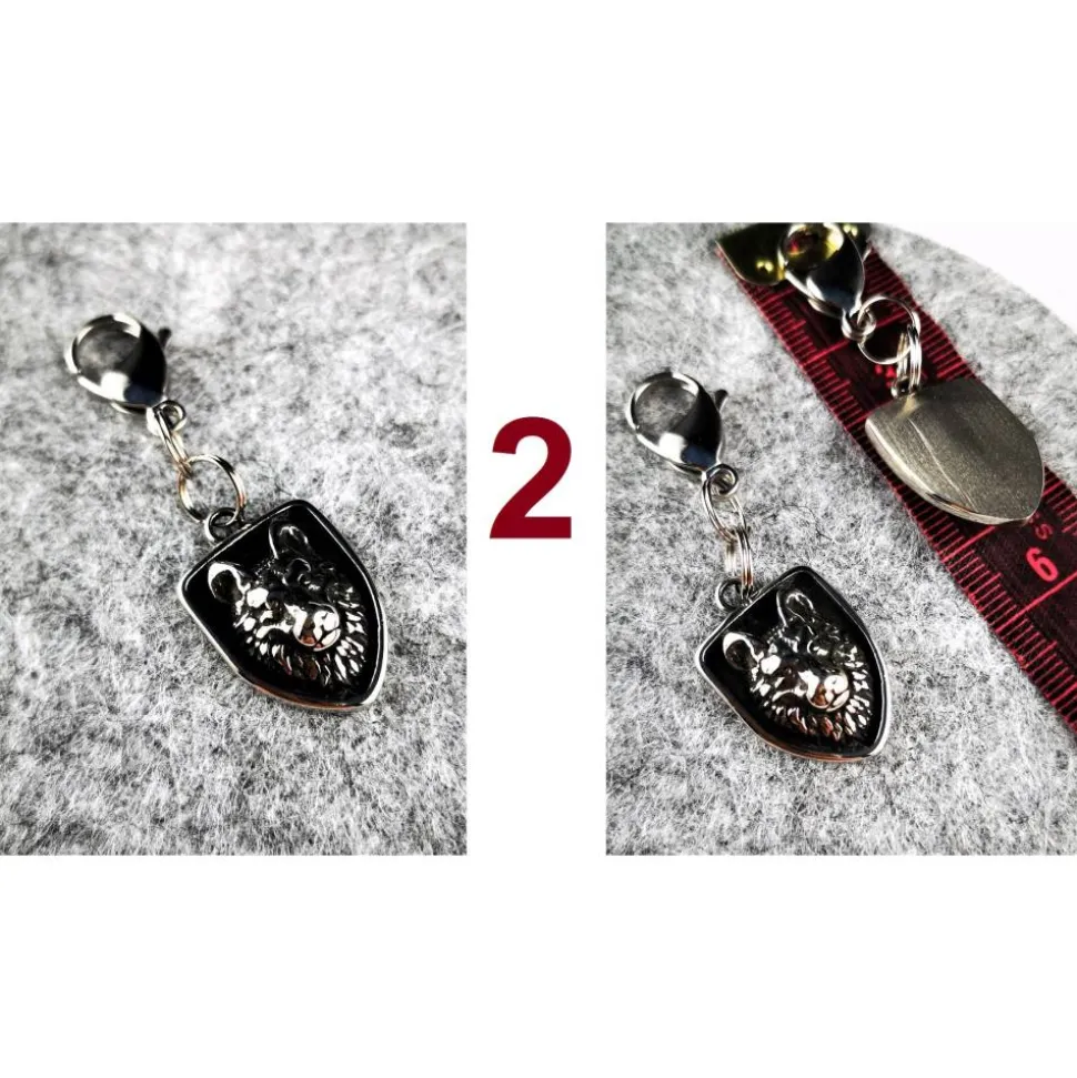 Die Längen der verschiedenen Anhänger sind auf dem Bild (Masband in cm) erkennbar.