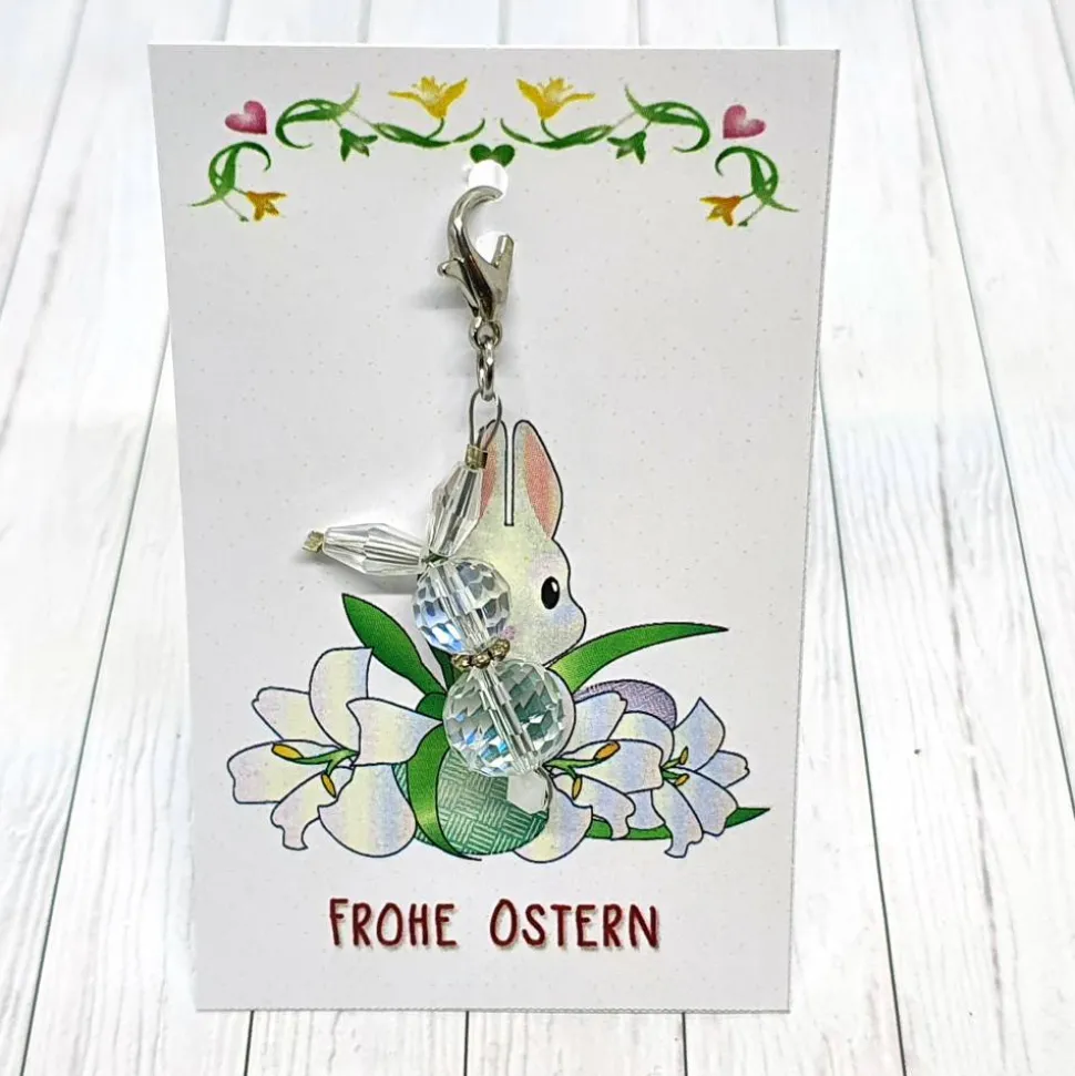 Was hoppelt denn da? Süße Hasen aus hochwertigen Kristallglasperlen warten darauf, Deinen Alltag zu verschönern. Ob als Geschenkanhänger mit praktischem Karabiner oder als Deko für den Osterstrauß mit Schnellaufhänger – dieser kleine Hingucker macht überall eine tolle Figur.