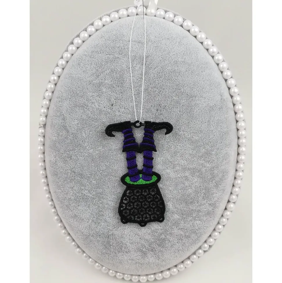 Lace Produkte werden mit einer Stickmaschine und Stickgarn auf wasserlöslichem Vlies gestickt. Nach dem Stickvorgang wird das Vlies ausgewaschen, sodass letztendlich nur die Stickerei übrig bleibt.