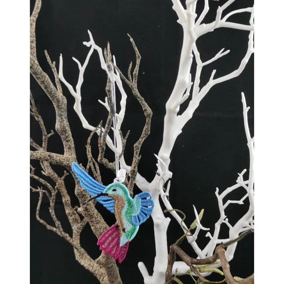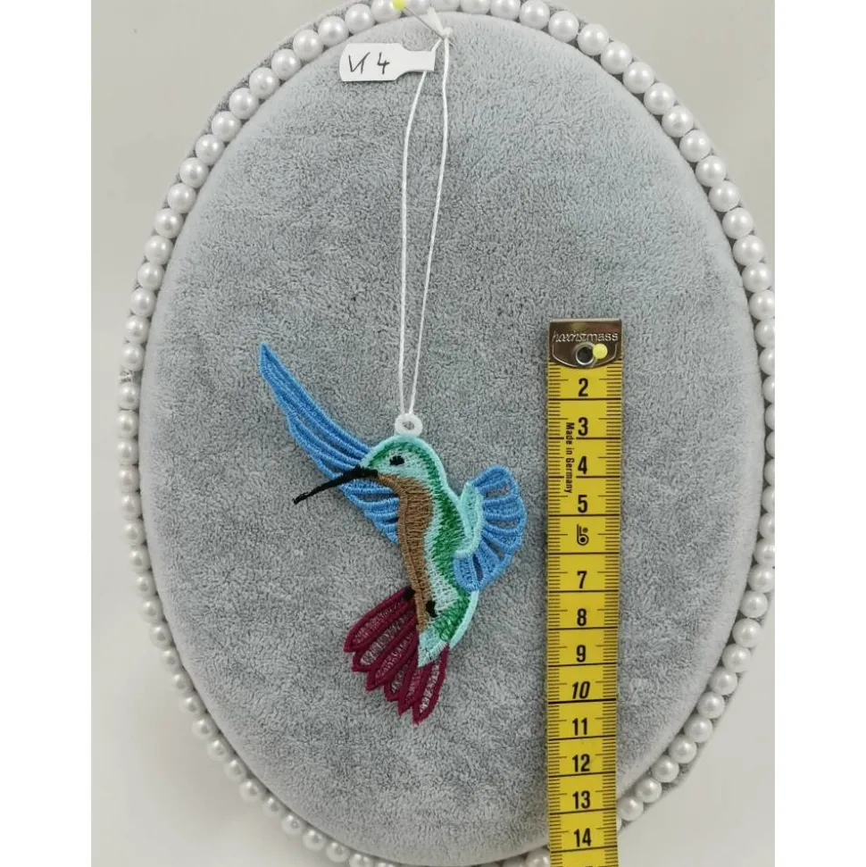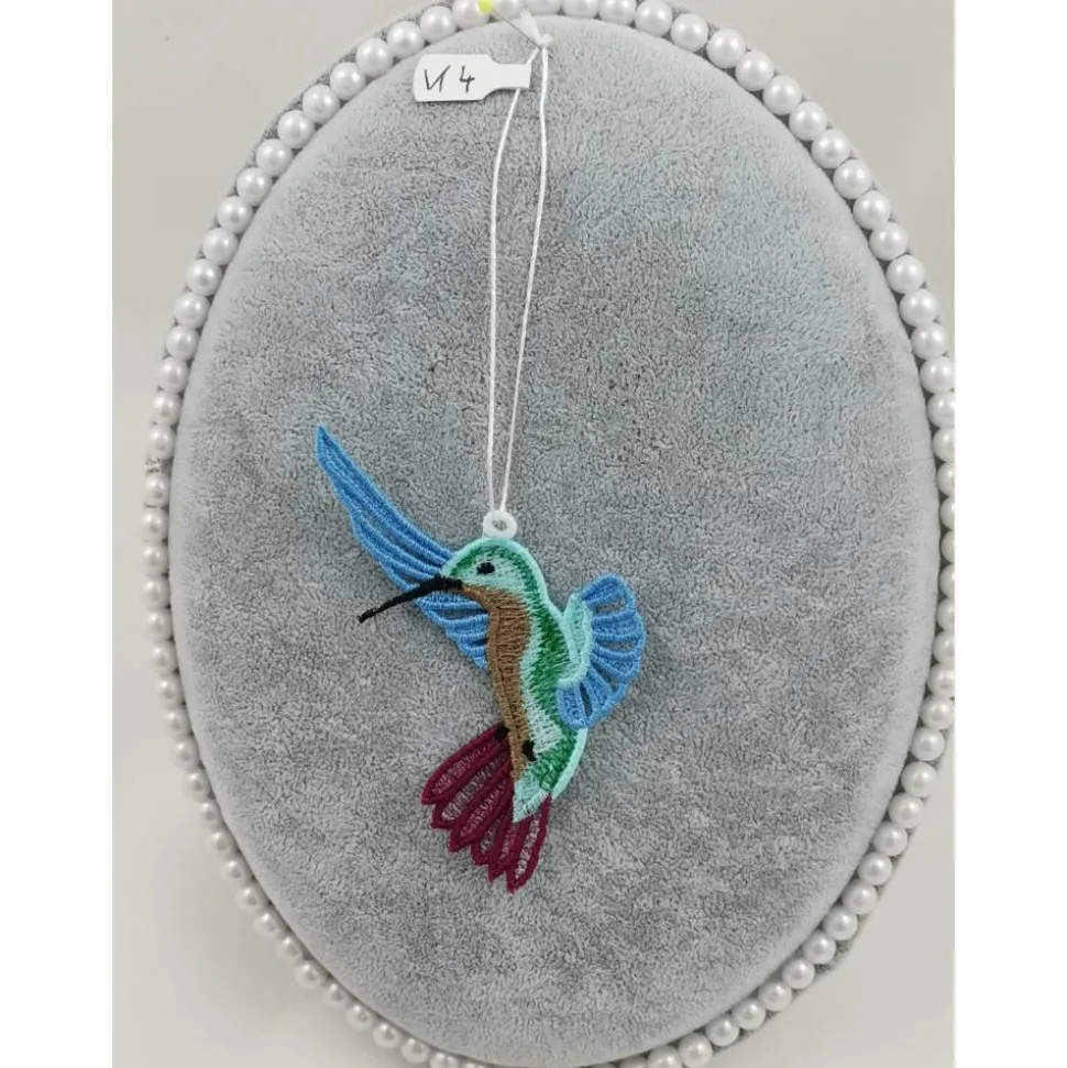 Lace Produkte werden mit einer Stickmaschine und Stickgarn auf wasserlöslichem Vlies gestickt. Nach dem Stickvorgang wird das Vlies ausgewaschen, sodass letztendlich nur die Stickerei übrig bleibt.
