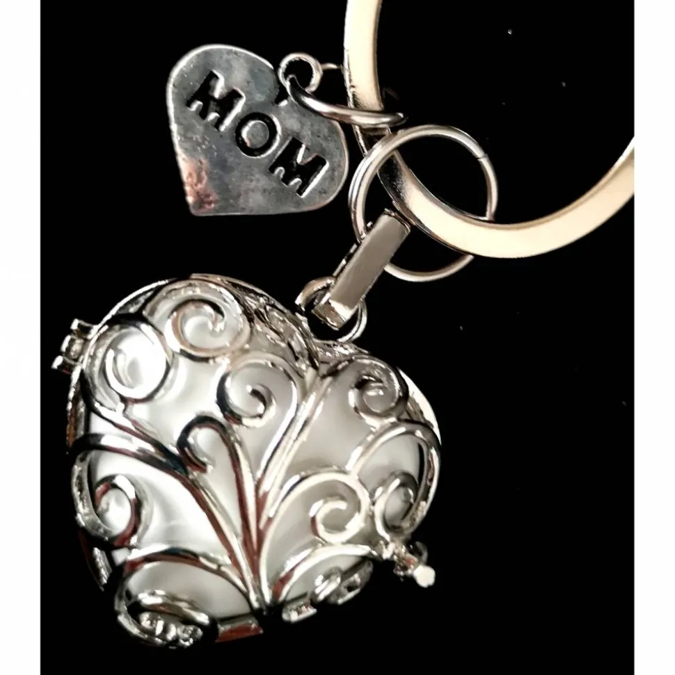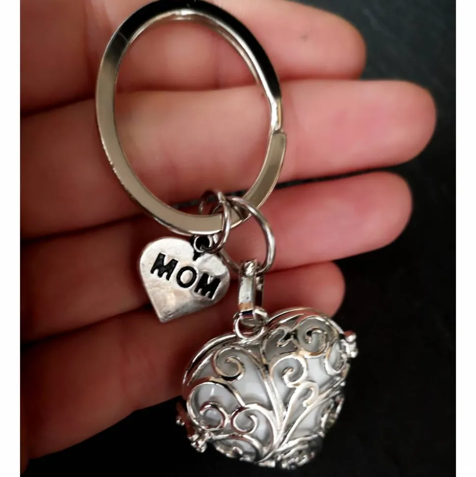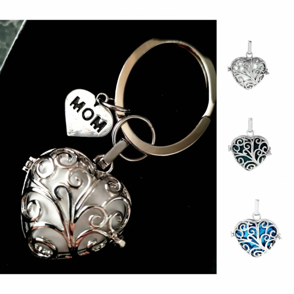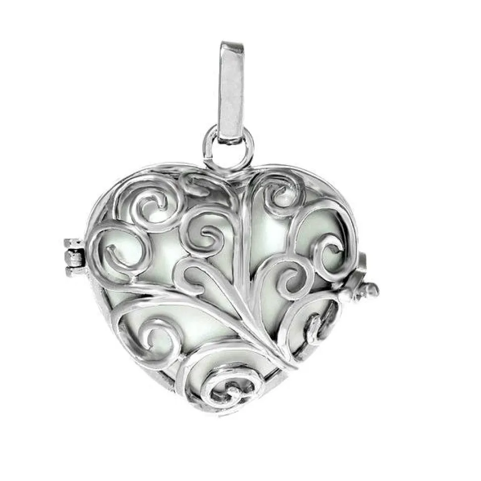 Dieser Anhänger ist silberfarben (Vintage-Stil) und mit einer Klangkugel und Anhänger mit Prägung.