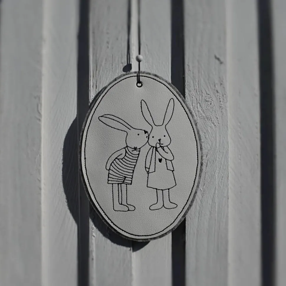 Gefertigt aus weißem Kunstleder und Wollfilz, mit einem farblich passenden Band / Perle.