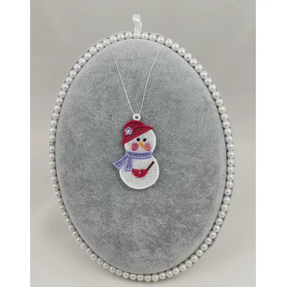 Lace Produkte werden mit einer Stickmaschine und Stickgarn auf wasserlöslichem Vlies gestickt. Nach dem Stickvorgang wird das Vlies ausgewaschen, sodass letztendlich nur die Stickerei übrig bleibt. Nach dem Trocknungsvorgang wird noch das Band zum aufhängen befestigt.
