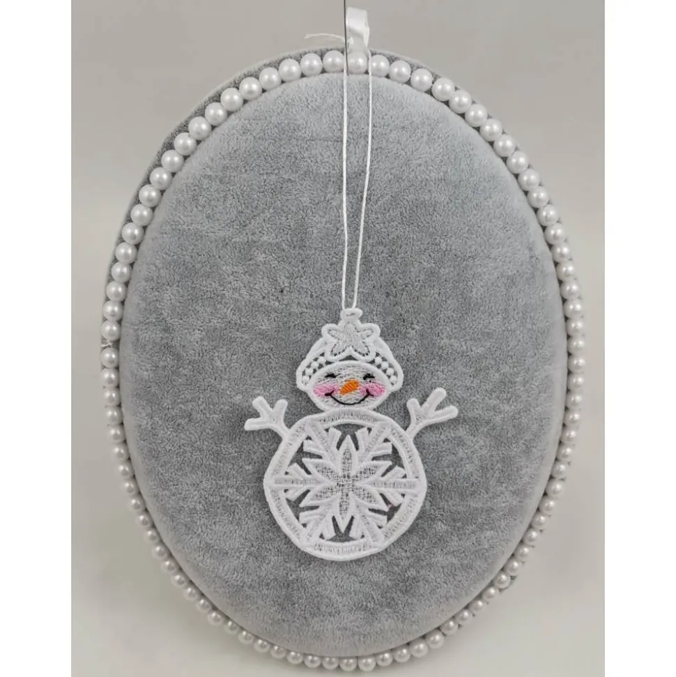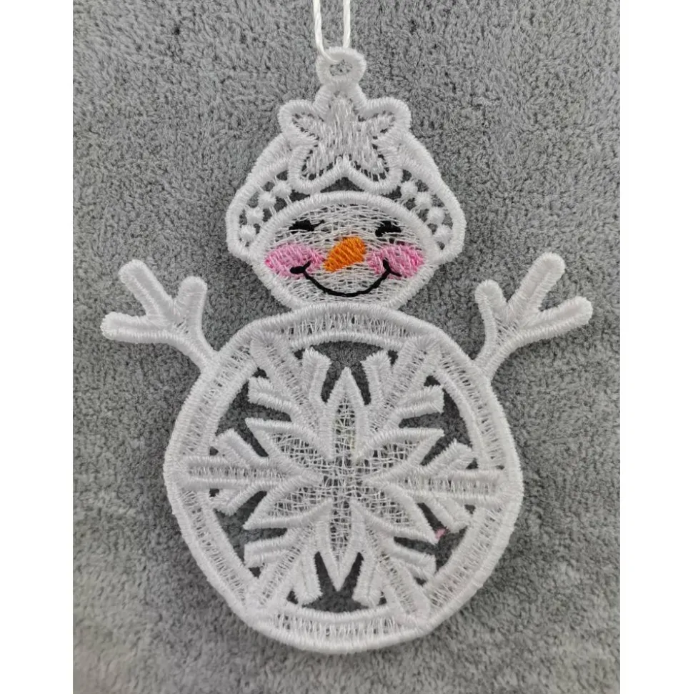 Lace Produkte werden mit einer Stickmaschine und Stickgarn auf wasserlöslichem Vlies gestickt. Nach dem Stickvorgang wird das Vlies ausgewaschen, sodass letztendlich nur die Stickerei übrig bleibt. Nach dem Trocknungsvorgang wird noch das Band zum aufhängen befestigt.