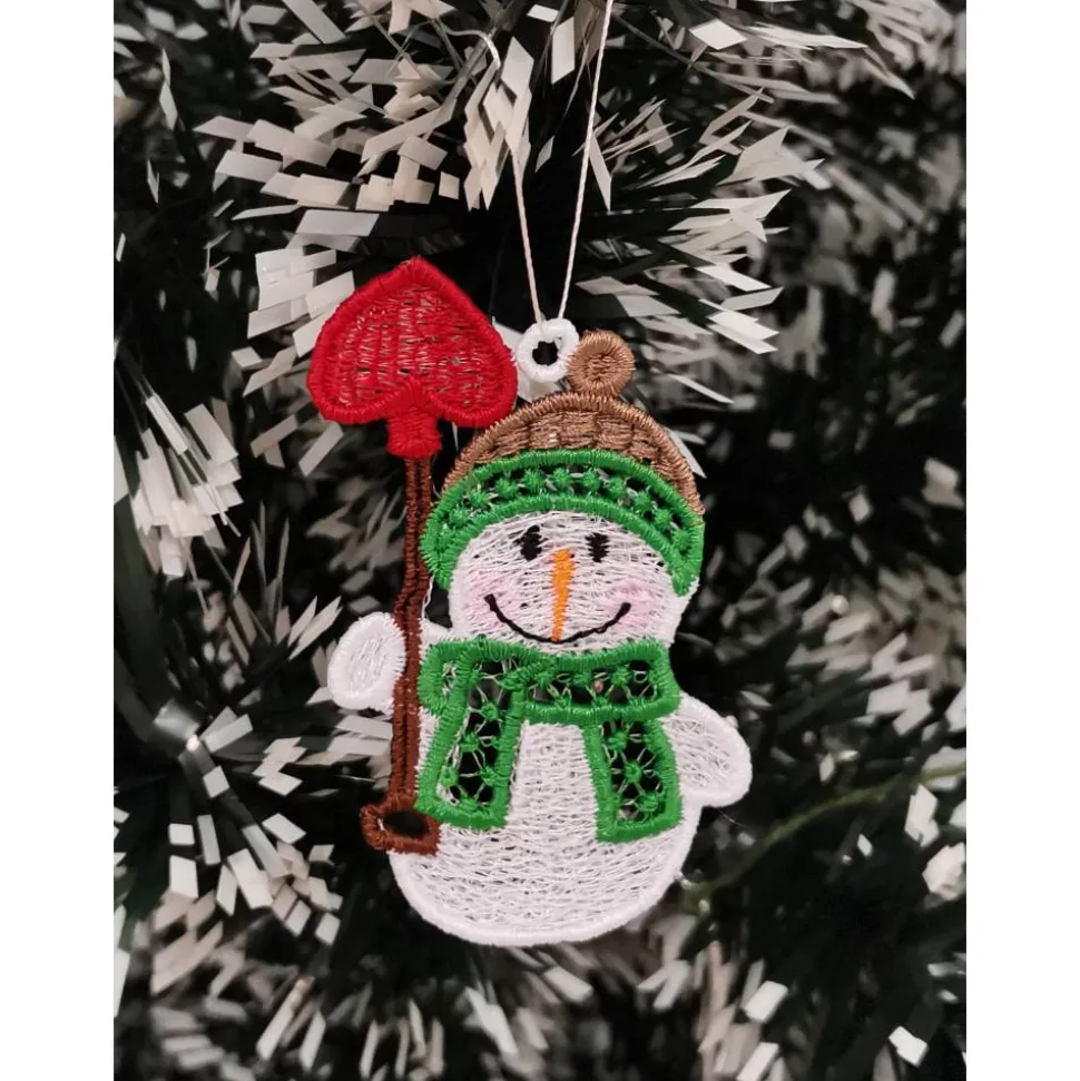 Lace Produkte werden mit einer Stickmaschine und Stickgarn auf wasserlöslichem Vlies gestickt. Nach dem Stickvorgang wird das Vlies ausgewaschen, sodass letztendlich nur die Stickerei übrig bleibt. Nach dem Trocknungsvorgang wird noch das Band zum aufhängen befestigt.