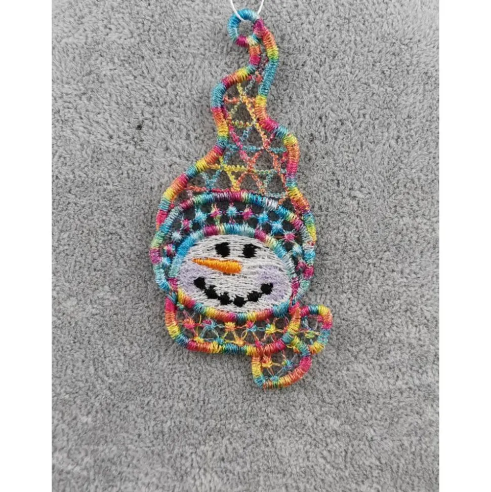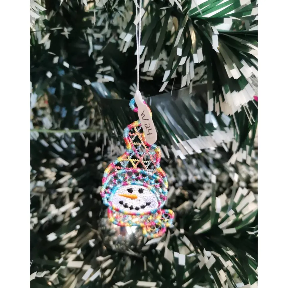 Lace Produkte werden mit einer Stickmaschine und Stickgarn auf wasserlöslichem Vlies gestickt. Nach dem Stickvorgang wird das Vlies ausgewaschen, sodass letztendlich nur die Stickerei übrig bleibt. Nach dem Trocknungsvorgang wird noch das Band zum aufhängen befestigt.