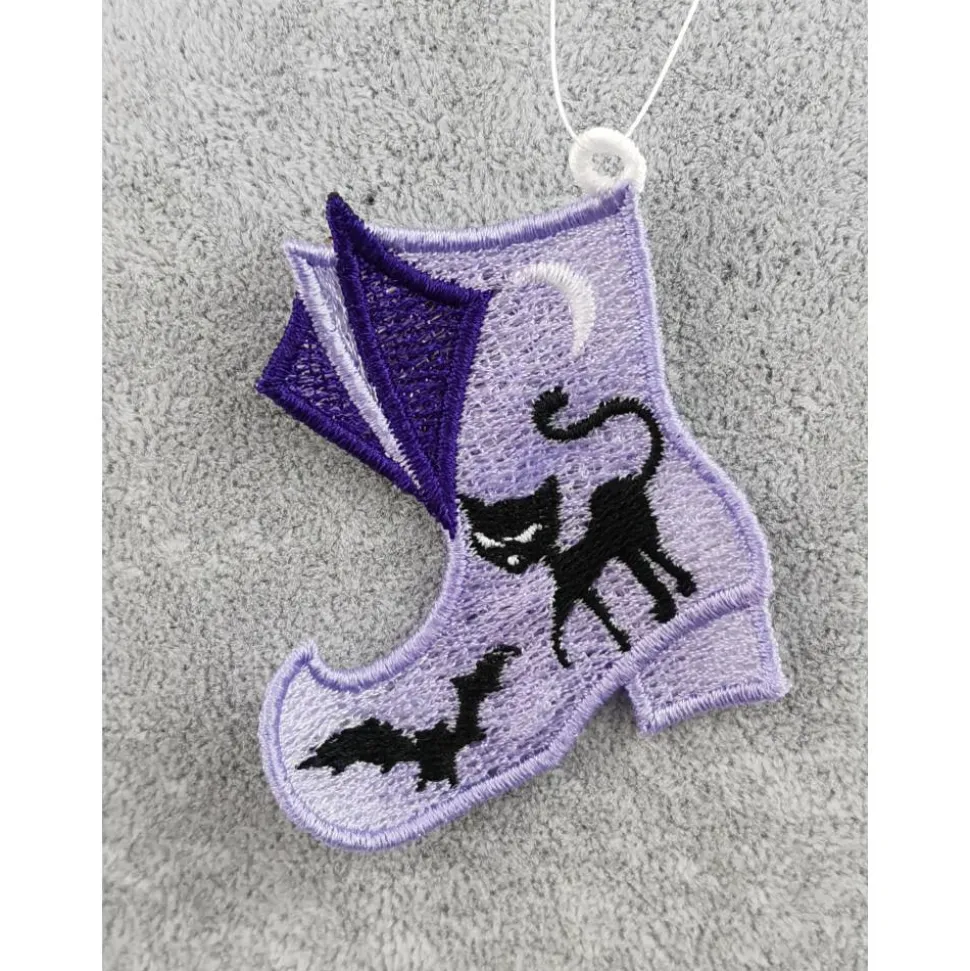 Lace Produkte werden mit einer Stickmaschine und Stickgarn auf wasserlöslichem Vlies gestickt. Nach dem Stickvorgang wird das Vlies ausgewaschen, sodass letztendlich nur die Stickerei übrig bleibt.