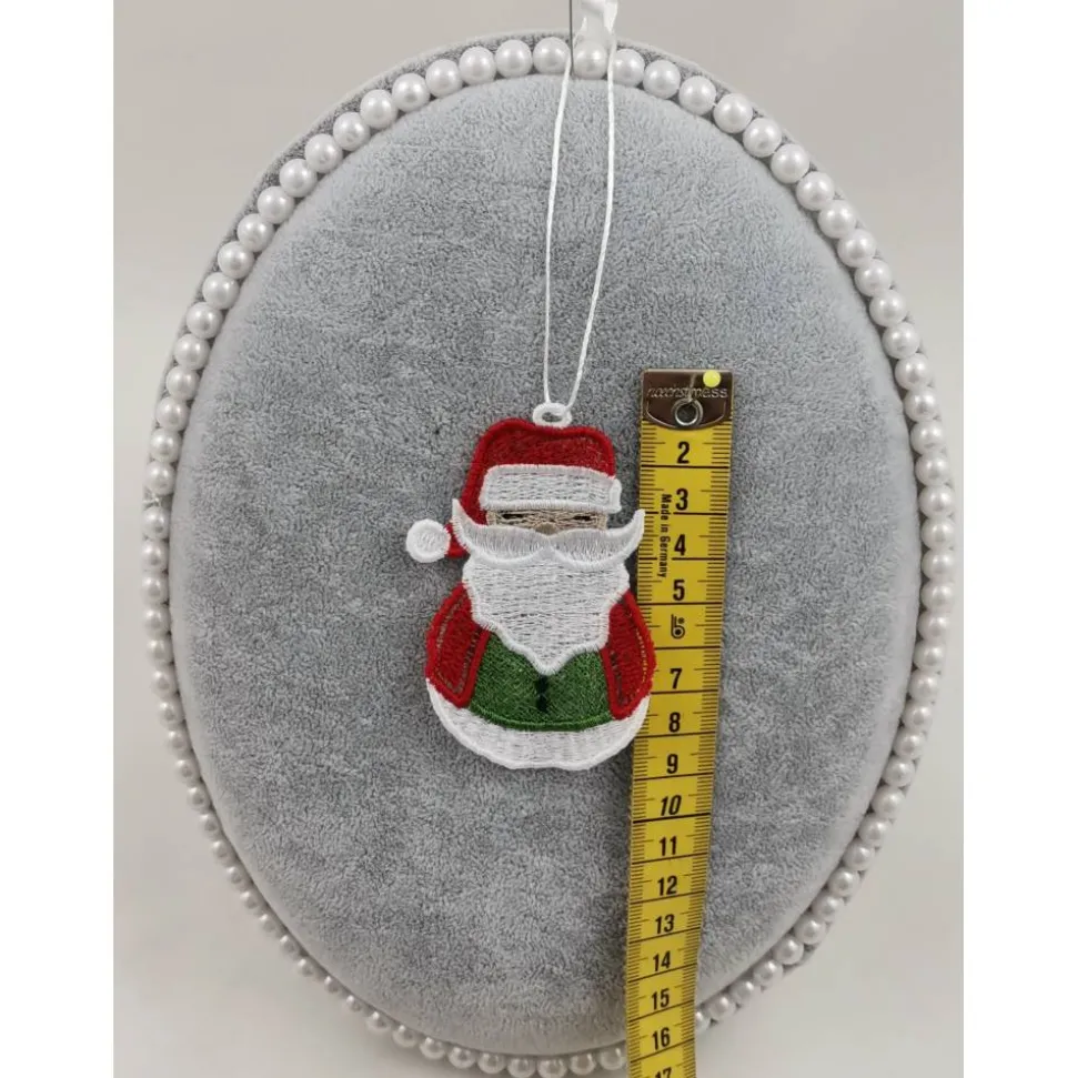 Lace Produkte werden mit einer Stickmaschine und Stickgarn auf wasserlöslichem Vlies gestickt. Nach dem Stickvorgang wird das Vlies ausgewaschen, sodass letztendlich nur die Stickerei übrig bleibt. Nach dem Trocknungsvorgang wird noch das Band zum aufhängen befestigt.