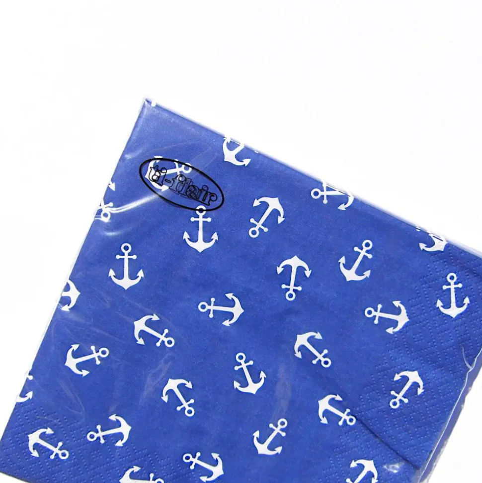 Perfekte Tischdeko für eine Hochzeit. 20 Papierservitten in blau mit einem weißen Anker.