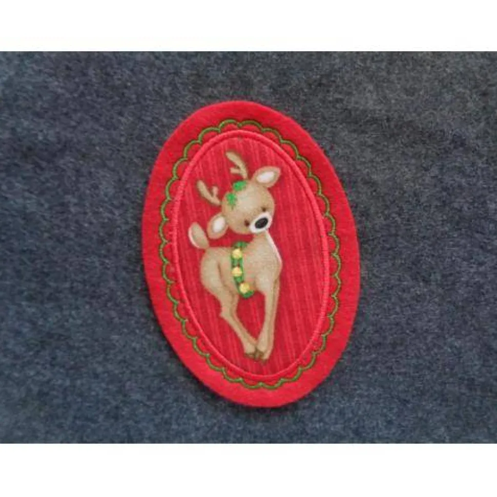 niedliche Weihnachts-Applikation Button mit kleinen süssem Rentier