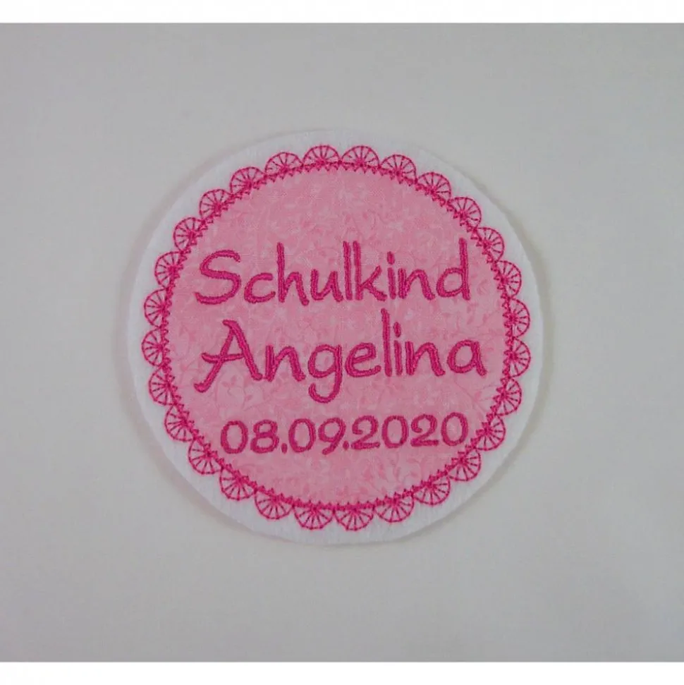 Gesticktes Motiv auch mit Namen und Geburtsdatum, oder anderem Text.