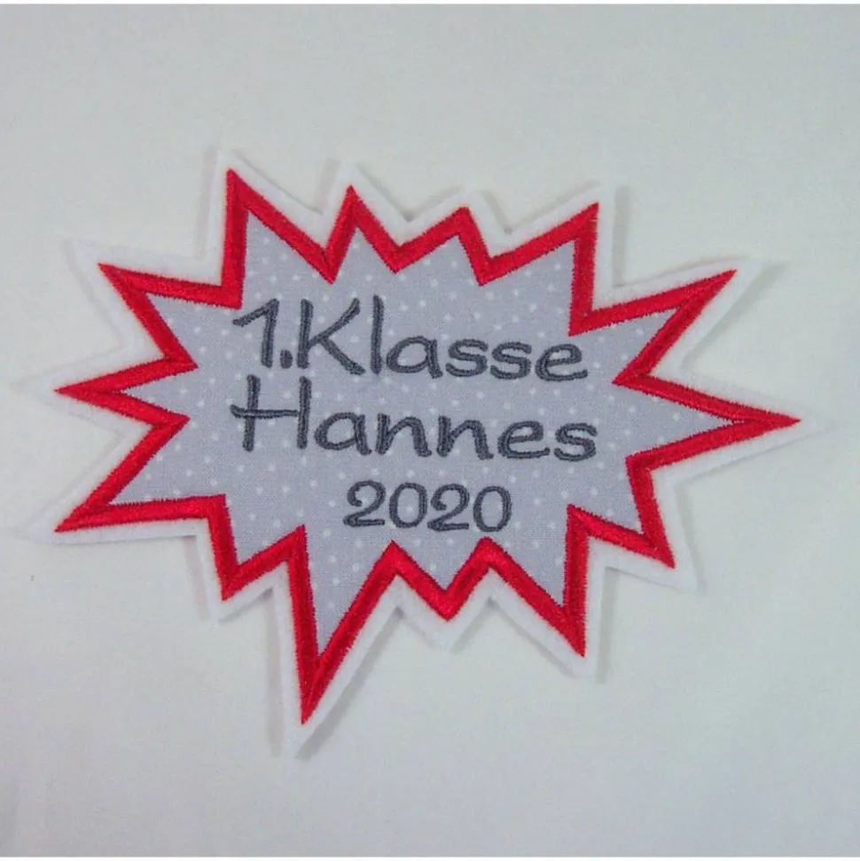 Gesticktes Motiv auch mit Namen und Geburtsdatum, oder anderem Text.