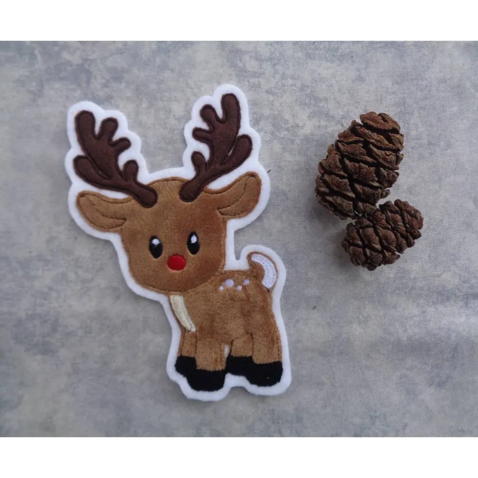Verwendetes Material: Nickiplüsch (80 % Baumwolle, 20 % Polyester), Kunstfilz (100 % Polyester), Stickvlies (100 % Polyester), und Markenstickgarn (100 % Polyester).