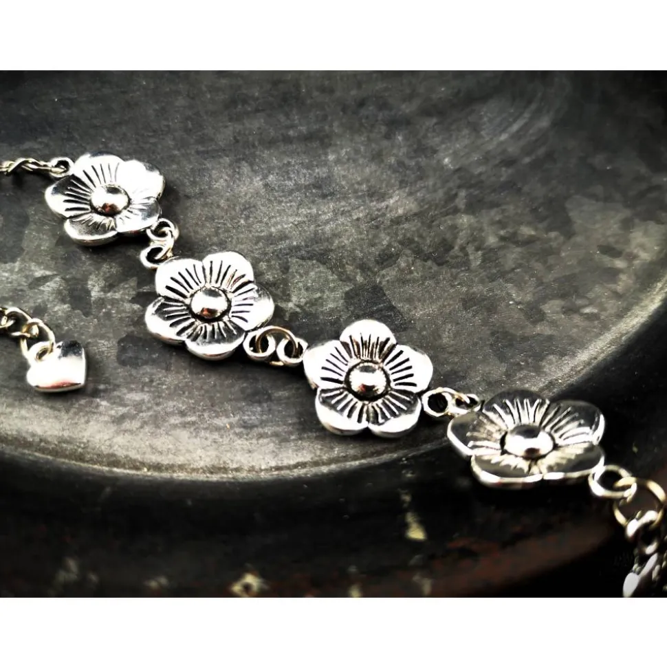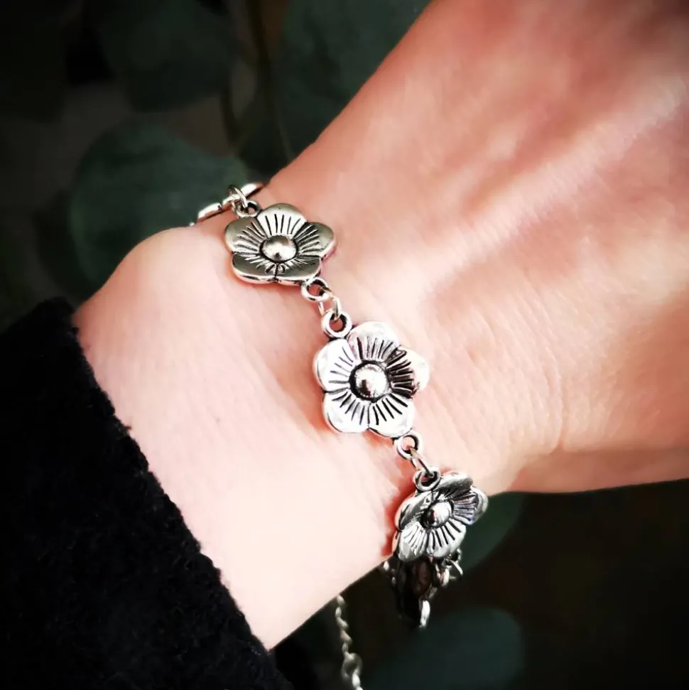 Die filigranen Blumenmuster auf dem Metallarmband verleihen Ihrem Outfit eine romantische Note und lassen Sie strahlen. Mit einer Länge von 18,50-23,50 cm ( Verlängerungskettchen) kann das Armband individuell angepasst werden, um perfekt um Ihr Handgelenk zu passen.