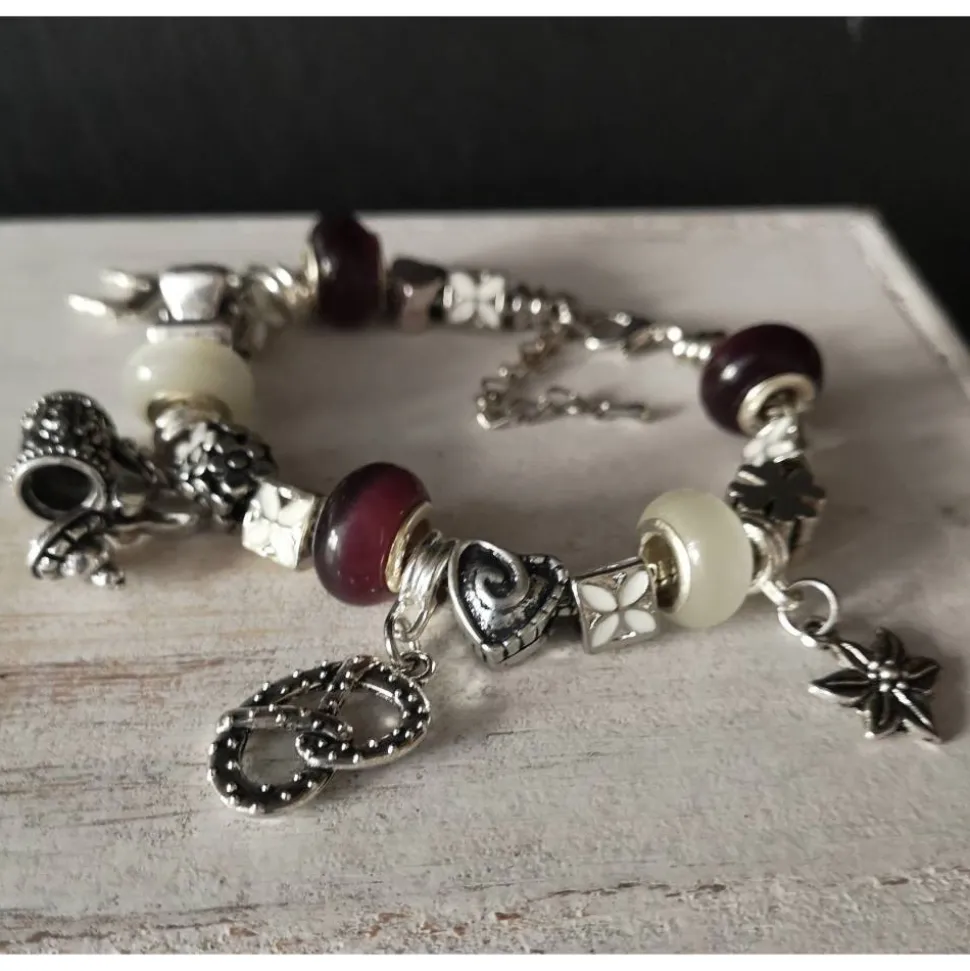 Farbe des Armbandes: silber-weiss-lila