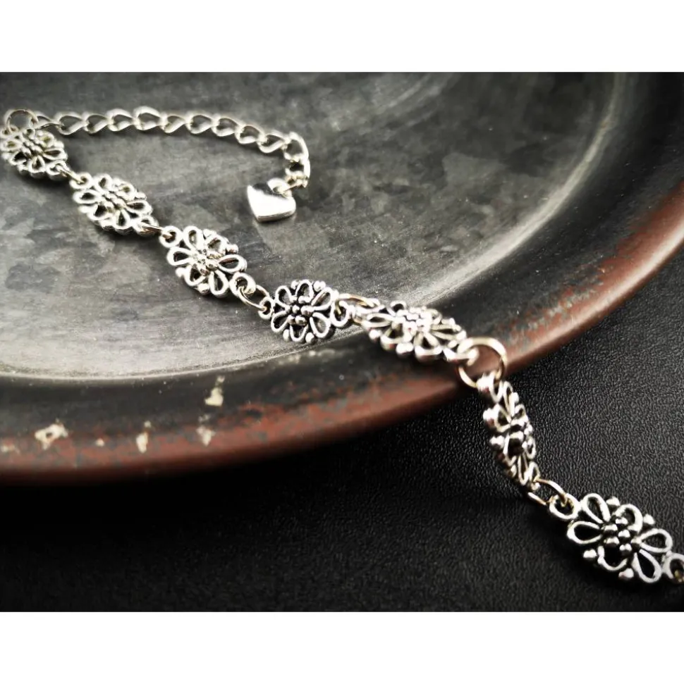 Die filigranen Blumenmuster auf dem Metallarmband verleihen Ihrem Outfit eine romantische Note und lassen Sie strahlen. Mit einer Länge von 18,50-23,50 cm ( Verlängerungskettchen) kann das Armband individuell angepasst werden, um perfekt um Ihr Handgelenk zu passen.