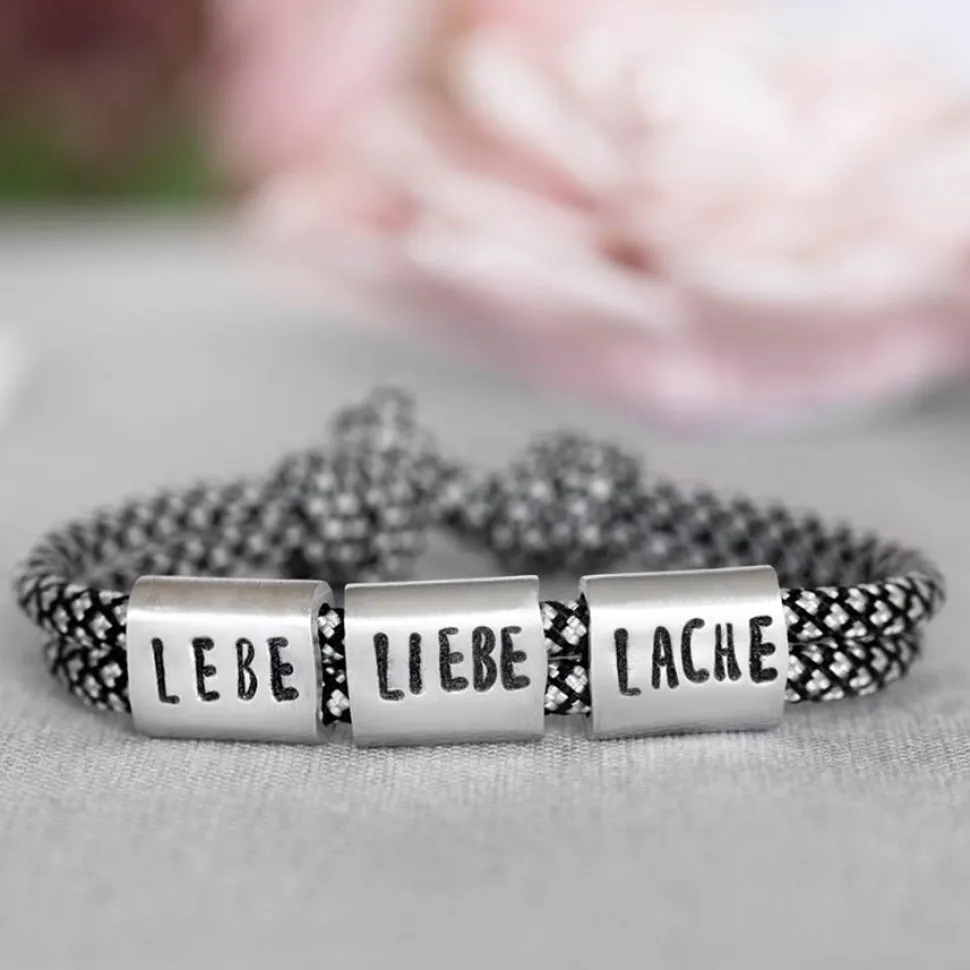 Armband personalisiert mit Gravur handgestempelt zur Kommunion, Geburtstag, Schulanfang, Konfirmation, Lebe Liebe Lache, Herrenarmband, Namensarmband