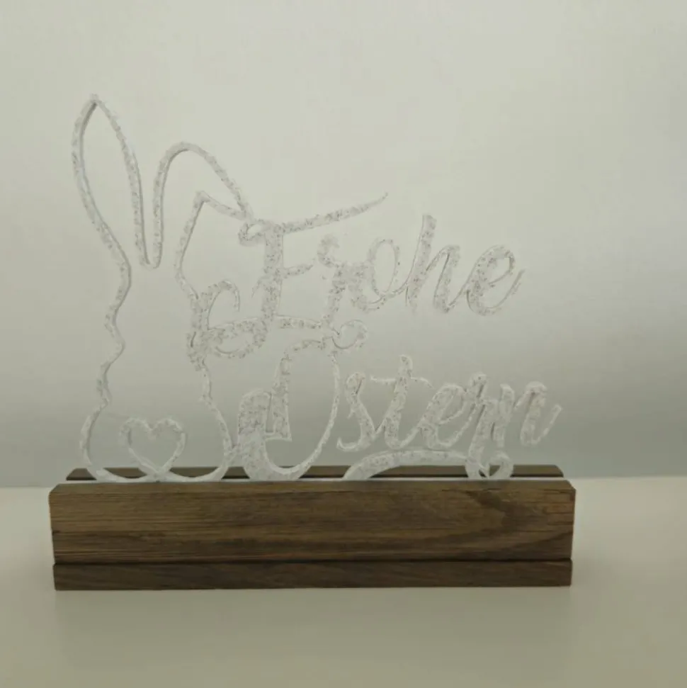 Der Aufsteller besteht aus Eichenholz sowie PLA.