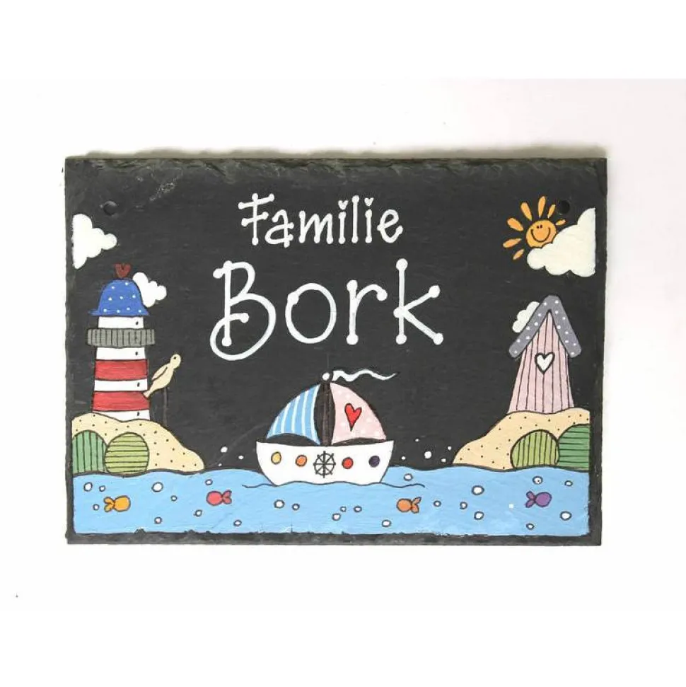 - Handbemaltes, maritimes Schiefertürschild mit Wunschbeschriftung