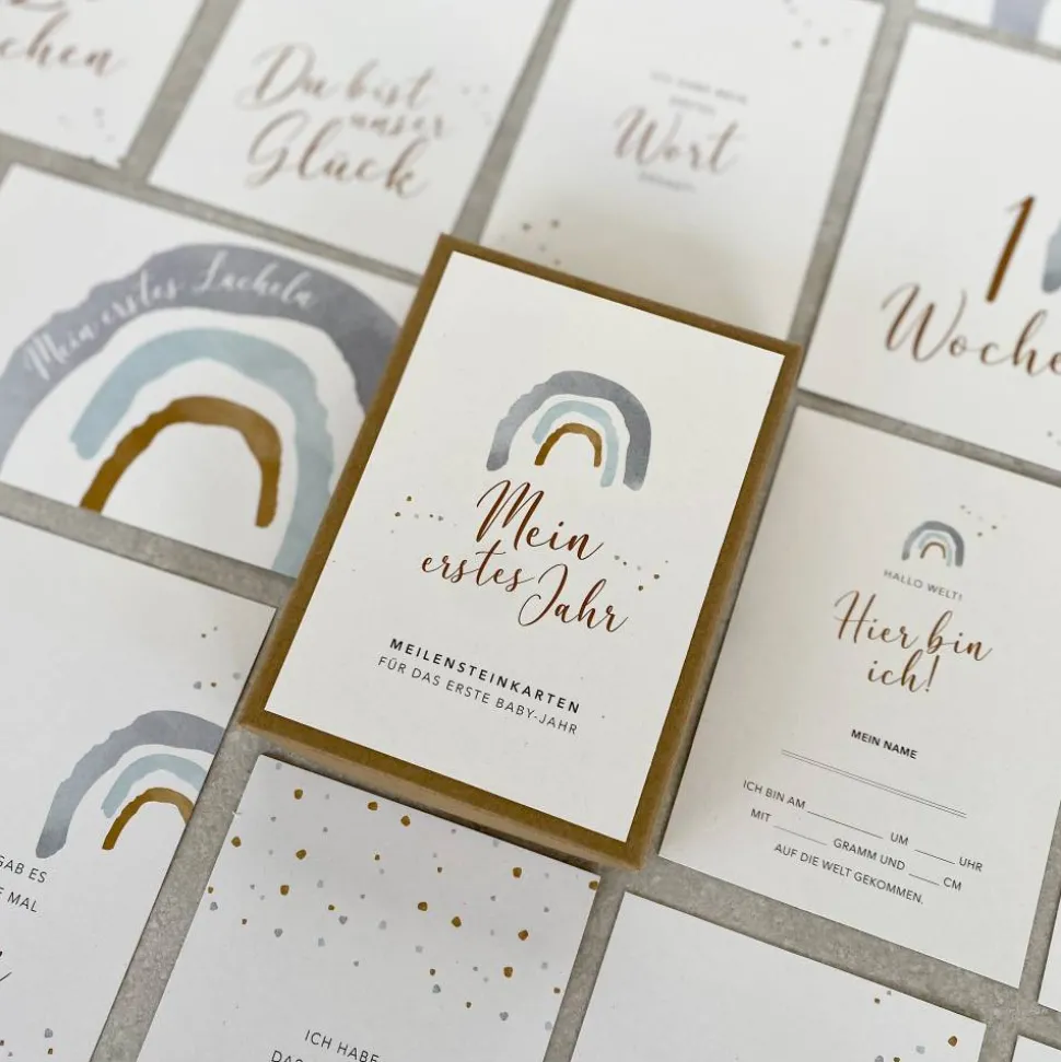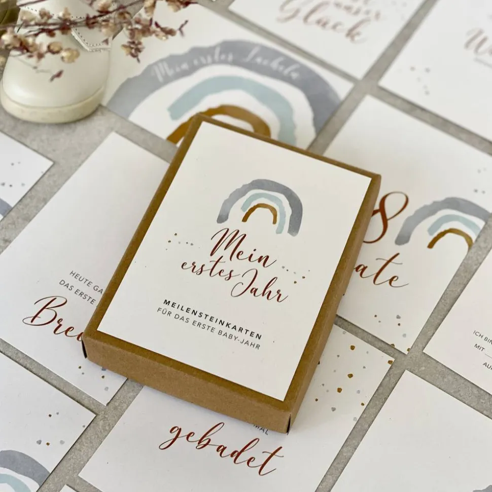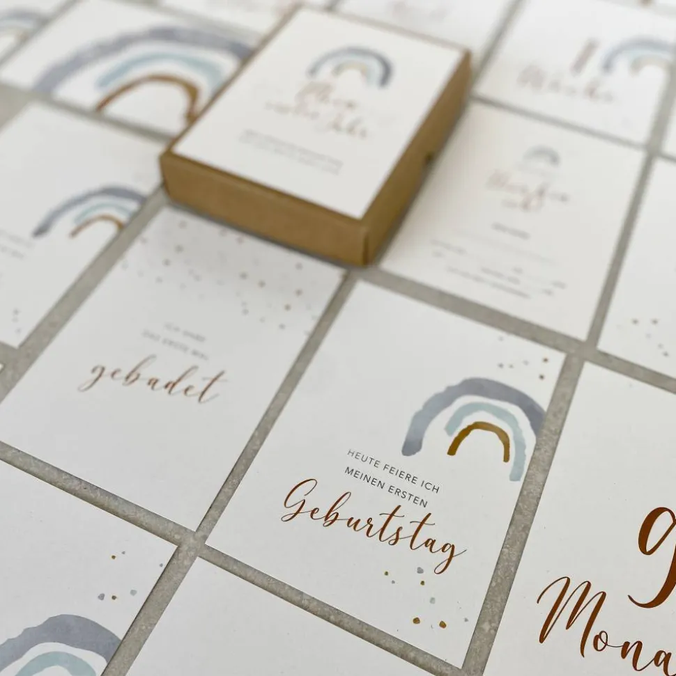 Das erste Babyjahr vergeht wie im Flug. Leider vergisst man auch viele Ereignisse sehr schnell wieder. Diese Meilensteinkarten sind eine schöne Möglichkeit, ganz besondere Augenblicke festzuhalten.