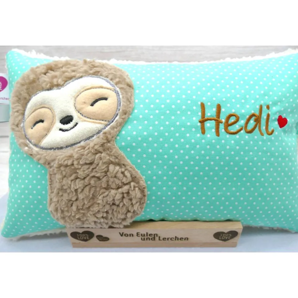 Aufwendig und mit viel Liebe zum Detail genähtes und gesticktes Mini-Kissen