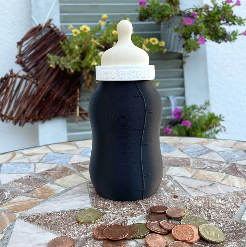 Babyflasche Spardose, personalisiert – über 50 Farben