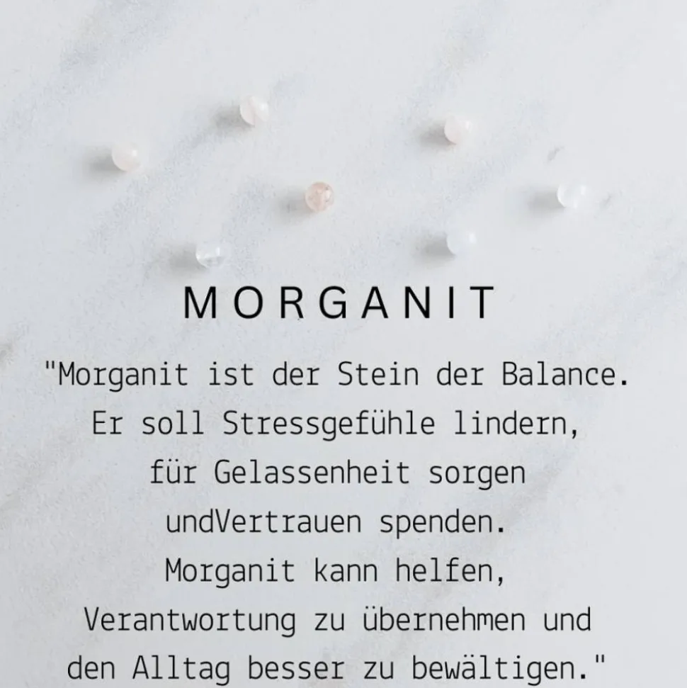 Morganit ist der Stein der Balance. Er soll Stressgefühle lindern, für Gelassenheit sorgen und Vertrauen spenden. Morganit kann helfen, Verantwortung zu übernehmen und den Alltag besser zu bewältigen.
