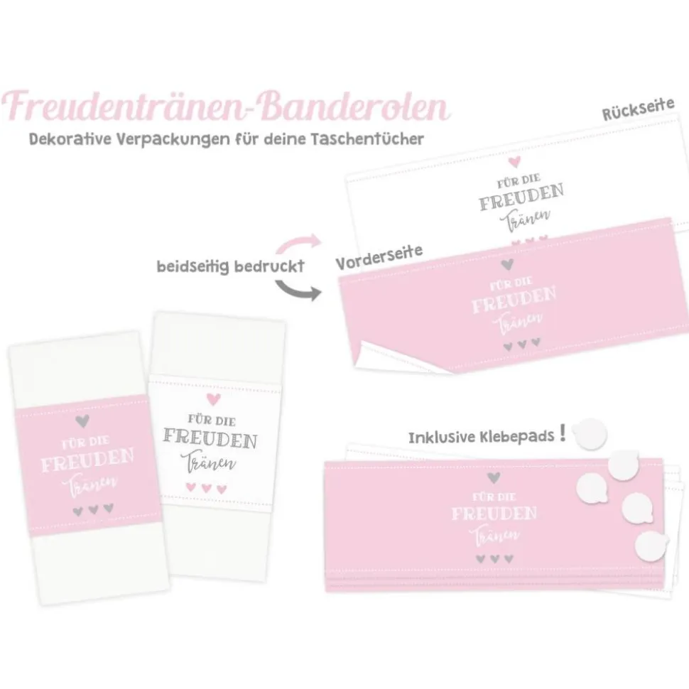 Komplettset Papierbanderolen mit Klebepunkten zum Verzieren Deiner Taschentücher (Lieferung ohne Taschentücher!)