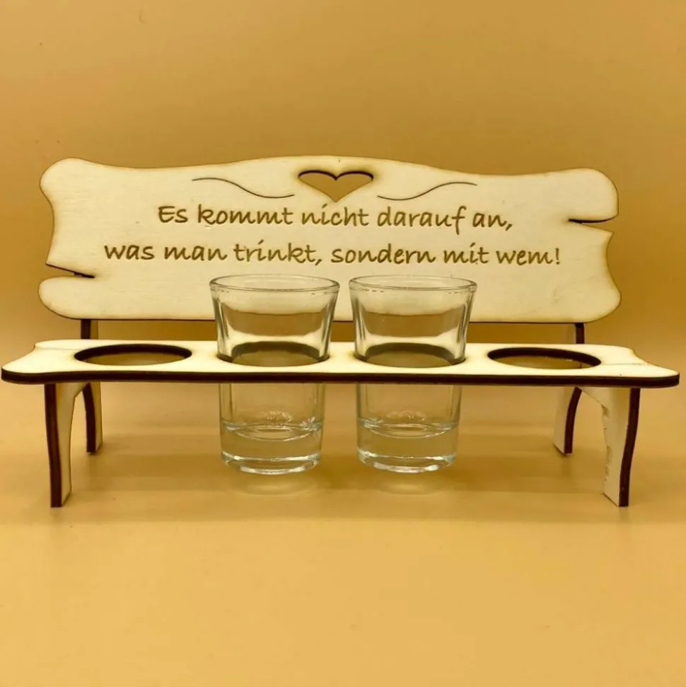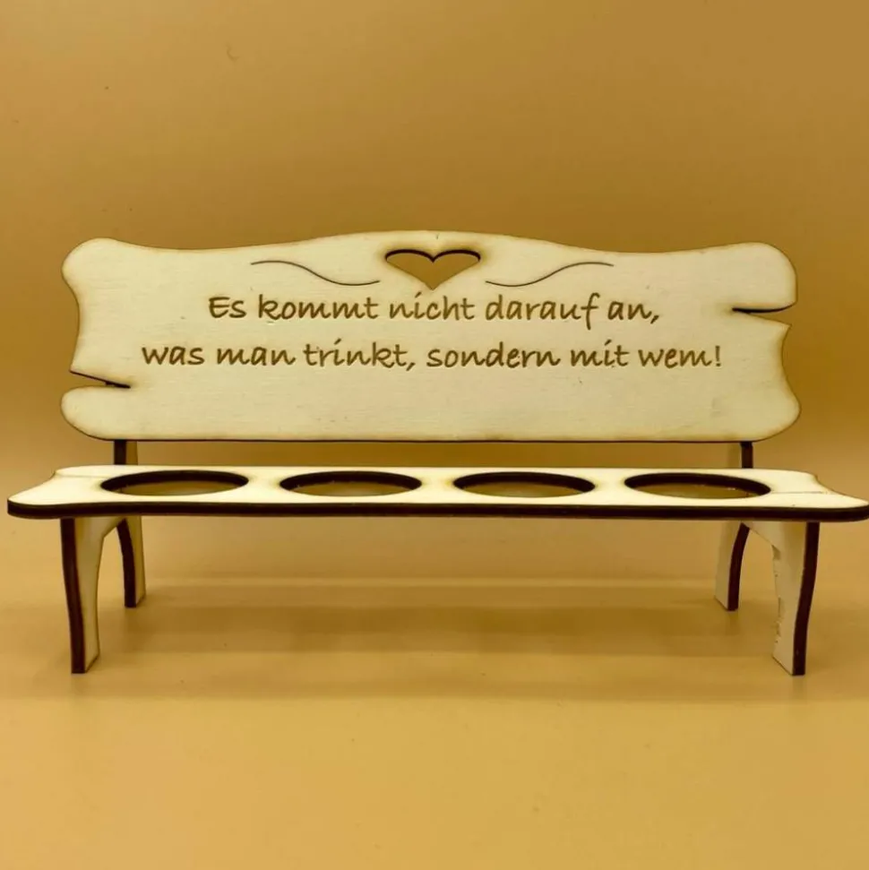 Bank aus Holz für Schnapsgläser